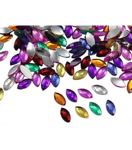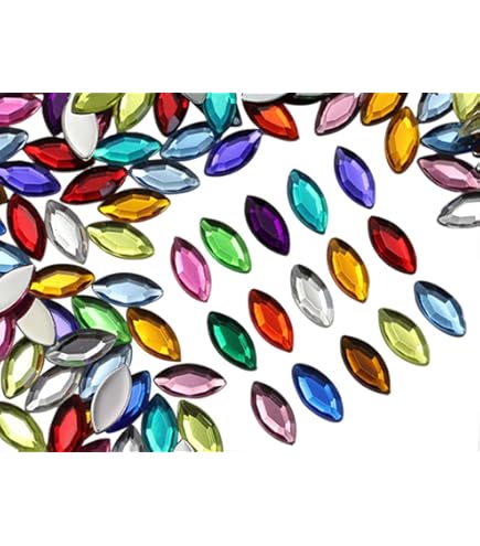 À facettes avec un dos plat et une feuille d'argent. Idéal pour la décoration d'événements, les centres de table et les costumes., Sans plomb. They are lead free (safe for skin! Professional grade for jewelry making, fabric embellishments, and commercial displays., Add your own glue. Les bijoux en forme de navette (marquise) mesurent 9 x 20 mm. Ajoutez de la dimension et de l'éclat à vos projets avec ces pierres de qualité supérieure. Product description The navette (marquise) jewellery measures 9 x 20 mm. High quality, faceted with flat back and silver back. Great for jewelry and costume making. Faceted with a flat back and silver foil. 100% brand Ideal for event decoration, centerpieces and costumes. Lead free. CPSIA and RoHS Compliant High quality acrylic (Plexiglas), perfect for clothing, jewelry making and crafts. Add... Great for jewelry making and costumes. Ils ont un dos plat et des facettes tout autour. Acrylique de qualité supérieure (plexiglas), parfait pour les vêtements, la fabrication de bijoux et les travaux manuels. ) and used as body gems! Used for cards and invitations, jewelry, face painting, costume making, cosplay embelishments Allstarco 20x9mm Assorted Colors Navette Flat Back Acrylic Conforme à la norme CPSIA et RoHS.
