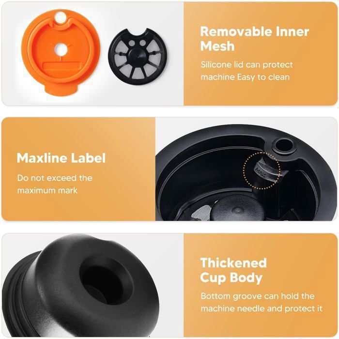 Dosettes Tassimo Dosettes De Cafe, Filtre A Cafe Reutilisable, Capsule De Cafe En Plastique Rechargeable Avec Cuillere Pour Machine A Cafe Bosch Tassimo, 180 Ml Cafetiere Tassimo Très sûr à utiliser lors de la préparation d'une tasse de café. CAFÉ FROID & CHAUD Essayez différentes saveurs, choisissez vos saveurs. FACILE A UTILISER : Remplissez de café moulu jusqu'à la limite indiquée, mettez le couvercle muni du filtre (attention à le mettre dans le bon sens, pointez vers l'extérieur) Appuyez délicatement tout autour du cercle pour fixer le couvercle orange, surtout pas au milieu, sinon le filtre se détache. 230ML)Dosettes de capsules de café réutilisables 60ML / 180ML pour... MACHINES À CAFÉ COMPATIBLES POUR TAS1403/02, TAS1003/01, TAS5552UC/05 FACILE A UTILISER Remplissez de caf moulu jusqu' la limite indiqu e, mettez le couvercle muni du filtre (attention le mettre dans le bon sens, pointez vers l'ext rieur) Appuyez d licatement tout autour du cercle pour fixer le couvercle orange, surtout pas au milieu, sinon le filtre se d tache. √ SIÈGE DE L'APRÈS-MIDI : Une tasse d'Americano, gardez bien votre statut. Cela préserve le goût original des grains et vous permet de faire couler un café doux. 60 ML EST LA MÊME TAILLE QUE 180 ML: Les différents modèles de dosettes de capsules de café sont à titre indicatif uniquement pour la sortie de la machine à café. COMPATIBLE AVEC BOSCH TASSIMO Comme compatible avec TAS1003 01, TAS1403 02, TAS5552UC 05, Tassimo T20, Tassimo Vivy2, Tassimo T55+ CTPM05UC, CTPM12, CTPM07, CTPM02, CTPM08, Tassimo Tas4013 09.Si vous ne Ne savez pas si votre machine est compatible avec notre dosette de caf , veuillez nous contacter. Dosette Tassimo® Compatible - Pour machine Bosch® - CAPSULE POD La quantit de caf qui sort d'une capsule de 60 ml est de 60 ml, le code-barres sur la capsule est de 180 ml et la quantit de caf qui sort est de 180 ml. Savourez une tasse de café parfumé. La quantité de café qui sort d'une capsule de 60 ml est de 60 ml, le code-barres sur la capsule est de 180 ml et la quantité de café qui sort est de 180 ml. MAXIMUM Remplir les grains de café et ne pas dépasser la marque maximale La machine caf juge la quantit de caf en fonction du num ro sur la capsule. √ FÊTE : Une tasse de café répond aux goûts de tous les invités.