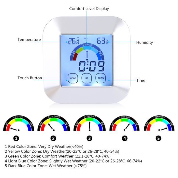 Paquet Inclus:1 x Thermomètre (sans batterie) ÉCRAN LCD: Écran LCD clair, Celsius et Fahrenheit, fonction de conversion de la fonction d'affichage de l'heure, pratique pour vos données de lecture et votre utilisation quotidienne. Vvikizy Compteur De Température Capteur De Température électronique LCD Largement utilisé: Facile à utiliser et largement appliqué au réfrigérateur, à la climatisation, au congélateur, à l'aquarium, à la maison, au bureau, à la voiture, etc. Température Plage: -50 ℃ ~ + 70 ℃ (-58 ℉ ~ + 158 ℉), Précision: +/- 1 ℃ Thermomètre numérique - Non spécifié - LCD - Sonde externe - Plage de Spécifications: Minuteur Plage d'affichage: 1: 00-12: 59 Caractéristiques: - Usage: Indoor - Type D'alimentation: Batterie AAA - Type d'affichage: DIGITAL - Théorie: Hygromètre - Origine: CN (Origine) - Numéro de Modèle: 105786 - Nom de: DIZAINLIFE - Model Number: Temperature Humidity Meter - Item: Digital Temperature Humidity Meter - Humidity Range: 1-99%RH - Certification: CE - Battery Included: NO - Taille de l'écran: 2 - 3,9 pouces - Style: Debout et accroché au mur - Mesure d température e max: 49 °C et Sous - Est dispositif intelligent: no 【DOUBLE SONDE】 Double sonde de mesure pour mesurer la température intérieure et extérieure. 【SERVICE FIABLE】 Lorsque vous rencontrez des problèmes de qualité après avoir reçu le produit, veuillez nous contacter à temps et nous nous chargerons du retour et de l'échange pour vous dès que possible. 118 x 30 x 28,5 mm/4,6 x 1,2 x 1,1 pouces, Poids du colis: 50g Thermomètre Numérique Hygromètre Compteur De Température D'Humidité... Caractéristiques: - Usage: Indoor - Type D'alimentation: Batterie AAA - Type d'affichage: DIGITAL - Théorie: Hygromètre - Origine: CN (Origine) - Numéro de Modèle: 105786 - Nom de: DIZAINLIFE - Model Number: Temperature Humidity Meter - Item: Digital Temperature Humidity Meter - Humidity Range: 1-99%RH - Certification: CE - Battery Included: NO - Taille de l'écran: 2 - 3,9 pouces - Style: Debout et accroché au mur - Mesure d température e max: 49 °C et Sous - Est dispositif intelligent: no 【ÉCRAN LCD】 Écran LCD clair, Celsius et Fahrenheit, fonction de conversion de la fonction d'affichage de l'heure, pratique pour vos données de lecture et votre utilisation quotidienne. Température supérieure à -20 ℃ Résolution: 0,1 ℃
