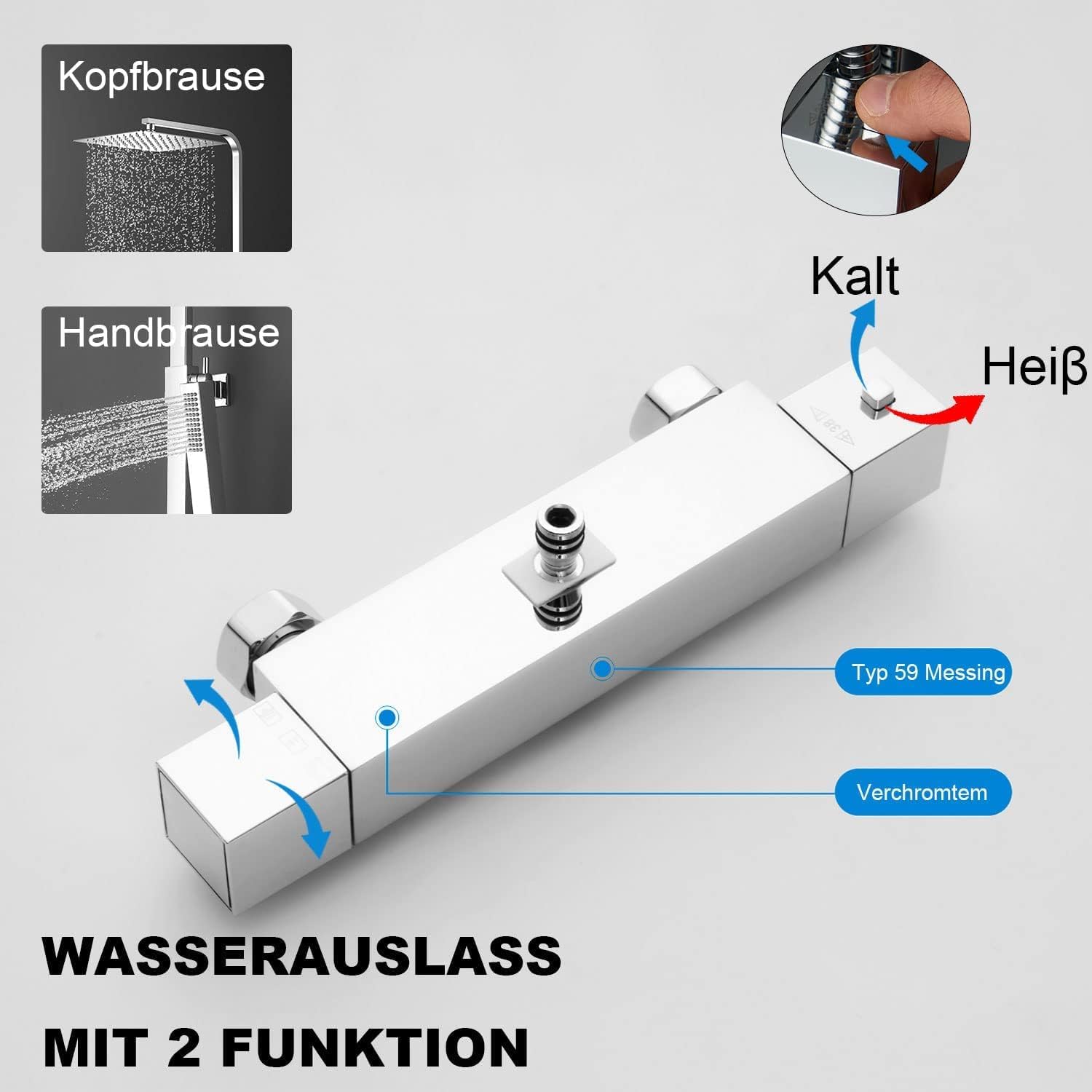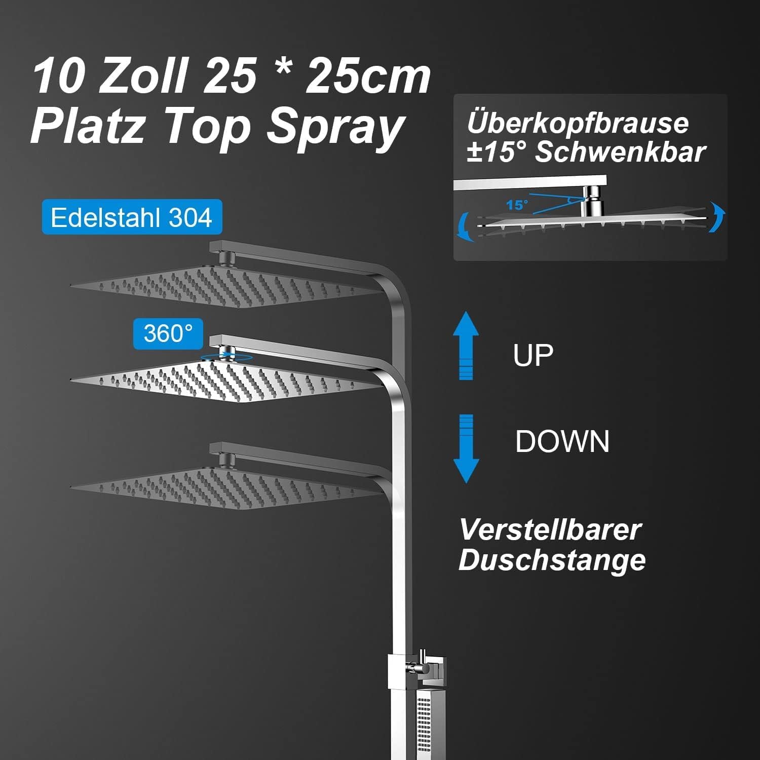 Robinet De Douche Avec Thermostatique Pluie - Set Complet - Carré Chromé - Inox 304