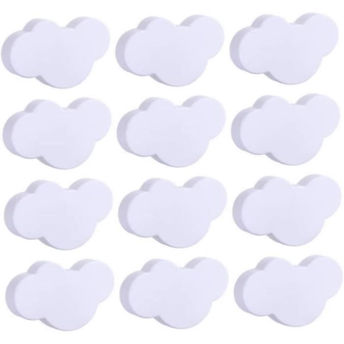 Spécifications : Matériau : PVC + alliage de zinc Taille du produit : 5., 4*3., 6*2., 3 cm Poids du produit : 18 g Dimensions du colis : 8*12*2., 5 cm Poids du colis : 200 g Contenu de l'emballage : 10 x poignée de traction 10 x vis Avec un style nuage, ils sont beaux et mignons, rendent la chambre de vos enfants plus douce Facile à installer - Il suffit de percer un trou à l'endroit où vous souhaitez l'installer, puis de passer la vis à l'arrière de la planche et de serrer le bouton, facile à installer, pratique et économique Large application - Nos poignées de... ✅【Style mignon】 - Les boutons de porte de placard souples sont conçus spécialement pour les enfants. Bouton De Meuble Enfant Boutons De Meuble Enfant, 10Pcs Poignées De Boutons D'Armoire En Forme De Nuage De Dessin Animé, Boutons De Tiroir Mignons Pour Enfants Pour Armoires, Portes, Commode, Armoires De Cuisine (White Bouton De Meuble Pour Enfant ✅【Facile à installer】 - Il suffit de percer un trou à l'endroit où vous souhaitez l'installer, puis de passer la vis à l'arrière de la planche et de serrer le bouton, facile à installer, pratique et économique Les enfants tiroirs Les poignées sont principalement en PVC sûr et durable et des matériaux en alliage de zinc pour une utilisation de longue durée et les... ARMOIRE À TIROIRS pour chambre d'enfants, boutons et poignées, dessin Avec un style nuage, ils sont beaux et mignons, rendent la chambre de vos enfants plus douce ✅【Toucher confortable】 - Les boutons de porte d'armoire souples sont conçus de manière ergonomique pour être facilement tirés et retirés, confortables et faciles à tenir.