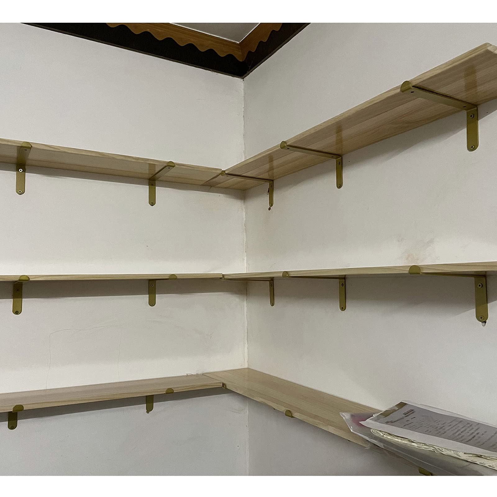Le support est équipé de vis de montage et de boulons d'ancrage de haute qualité et d'autres accessoires faciles à installer. DOMI PRO 2pcs Équerre Étagère Robuste 20cm, Industrielle Support D 2 Pièces equerre pour Etagere industriels Robustes,Charge maximale... ☞Practicabilité: Le support d'étagère mural peut tirer pleinement parti des avantages du mur, étendre l'espace de stockage et de décoration pour vous, maximiser l'utilisation de l'espace, et peut ajouter de l'intérêt à votre pièce et rendre votre maison plus chaleureuse et bien rangée. ☞Conception concise : le support d'étagère flottante a une apparence simple et généreuse, tenant compte de la beauté et de la fonctionnalité, et a un style moderne et simple. Spécification: Nom: Support d'étagère matière : métal Couleur : or Taille: 10x8 cm/3,9*3,1 pouces, 15x10 cm/5,9*3,9 pouces, 20x10 cm/7,9*3,9 pouces, 25x15 cm/9,8*5,9 pouces Charge maximale : 50kg Le paquet contient : 2x supports d'étagère + accessoires Caractéristiques: Imperméable, antirouille, anti-oxydation, beau et pratique Robuste et durable, pas de déformation, pas de décoloration, résistance à l'abrasion Forte capacité de charge, stabilité et sécurité Précautions: Taille: en raison de mesure manuelle, la taille réelle aura une erreur d'environ 2cm. Il peut maintenir la meilleure apparence à tout moment. ☞Haute charge : le support d'étagère à angle droit s'adapte parfaitement au mur, avec les accessoires d'installation correspondants, ce qui améliore la stabilité globale et augmente le facteur de sécurité. Installation: plaques de plâtre, les murs en bois, les briques creuses et les murs non porteurs ont une faible capacité de charge et ne sont pas recommandés. Il peut être parfaitement assorti à divers styles de décoration pour créer un bel effet flottant pour vous et ajouter un style charmant à votre maison. AJW-2 PCS Équerre de Fixation pour Étagère 25*4*15cm Support d'Étagère... Support Etagere Murale Xrdbfd Support D'étagère Robustes, Equerre Pour Etagere Mural En Métal Equerre Etagere Murale ☞Multi-usages: le support d'étagère en métal est le meilleur choix pour le stockage de décoration de bricolage, adapté au salon, à la chambre à coucher, à la cuisine, à la salle de bain, au jardin, au couloir, au bar, au magasin, au bureau, au bureau et à d'autres endroits.