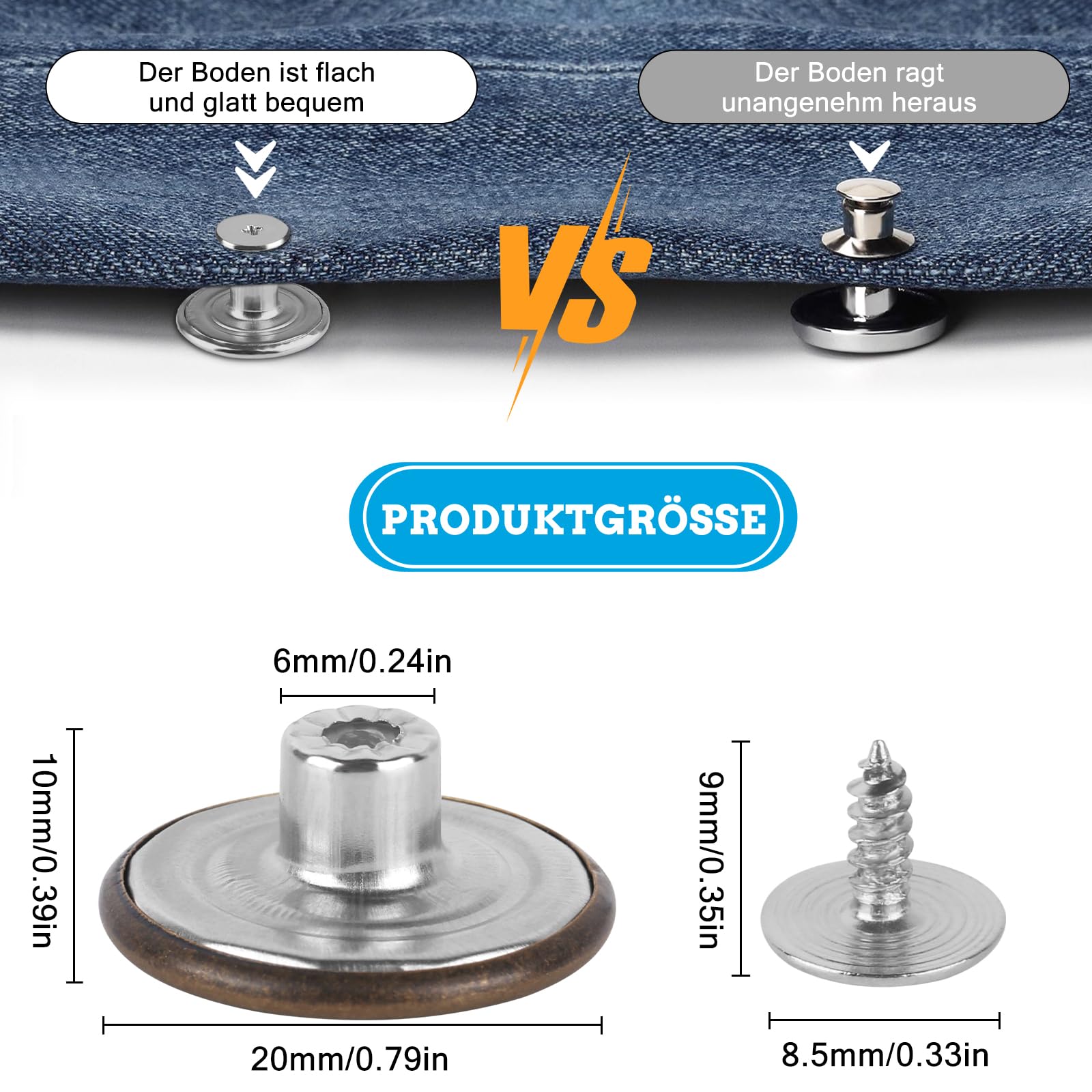 👖【Facile à utiliser】Il suffit de coller le bouton du jean à travers le tissu et d'installer la base. Remplacement des boutons de jeans 50 pièces, bouton instantané Boucle de taille du pantalon : facile à transporter et à ranger, et il est pratique pour votre utilisation d'urgence. et il peut être un bon remplacement pour votre cassé. Boutons de rechange pour jeans Boutons Jeans 10 Pièces Boutons Pressions Métalliques, Bouton De Rechange Jeans Bouton De Jean Dites adieu aux ceintures, confort toute la journée Ces boutons de rechange offrent une solution immédiate si votre pantalon est trop serré, offrant un espace supplémentaire, ou si votre pantalon est trop lâche... 👖【Conception pratique】Ces épingles à boutons pour jeans sont très faciles à utiliser. 👖【APPLICATIONS LARGES】Les épingles à jeans peuvent non seulement remplacer les anciens boutons, mais peuvent également être utilisées pour les boutons de masque sur les jeans, les combinaisons, les poches en jean, les jupes, les vestes, les costumes, le velours côtelé, les manteaux, les combinaisons, les travaux manuels et les chapeaux. Aucune couture requise, vous pouvez facilement attacher les boutons avec le tournevis inclus pour que votre pantalon s'adapte mieux. 50 Pièces Boutons de Jeans Métalliques - Remplacement Sans Couture Pour Pantalon, Instantanés Réglables Amovibles - 10 Styles Avec Tournevis Product Details Moyenne des commentaires client: 4,5 4,5 sur 5 étoiles 586 évaluations var dpAcrHasRegisteredArcLinkClickAction; P.when('A', 'ready').