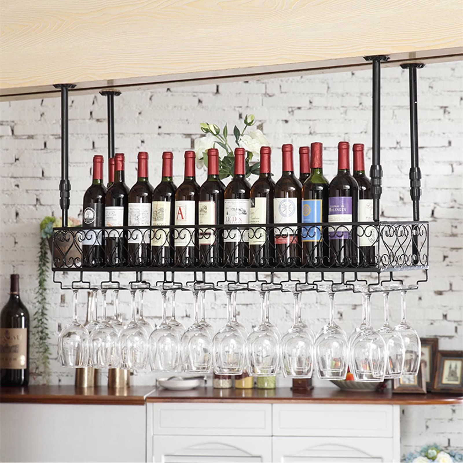 Porte-bouteilles Mural à Vin | Porte-verre à Vin Suspendu En Métal | Porte-bouteille De Vin Vintage | Porte-vin Mural Rustique Wine Cooler | Support