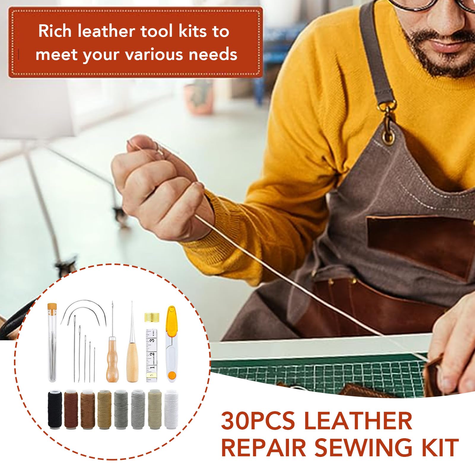 Également disponible avec des aiguilles de différentes tailles et formes, y compris des aiguilles émoussées et des aiguilles pointues, des aiguilles pointues triangulaires et des aiguilles courbes. ✿Accessoires pour outils de couture en cuir : si vous souhaitez terminer un projet de réparation de cuir rapidement et efficacement, l'utilisation de matériaux connexes est essentielle, par exemple B. Un cadeau pratique pour un ami qui aime bricoler. Kuppt Outils de travail du cuir, kit d'artisanat du cuir, kit d'outils ✿ Fil d'ameublement et aiguilles en option : notre kit de couture comprend 8 rouleaux de fil à coudre, chaque rouleau de 50 m/55 yards, 8 couleurs différentes qui correspondent à différentes couleurs de tissu. Parfait pour une utilisation à la maison ou en voyage. 45 pièces Kit de réparation de la peau : vous recevrez 10 fils à coudre, 15 aiguilles à coudre à la main, 9 aiguilles chanfreinées à grand œil, 2 poinçons en... Vous pouvez également coudre divers cuir, tissus, denim, toile, etc. ✿Un cadeau pratique : notre kit de couture en cuir peut être utilisé pour réparer des canapés, des tentes, des sièges de voiture, des manteaux, des parapluies, etc. Cela peut vous aider à résoudre les problèmes de couture. Vous serez heureux d'obtenir le kit. Machne à coudre le cur, Snger 45k Kit Travail Du Cuir Kit De Réparation Et De Couture Du Cuir, 30 Pièces, Grandes Aiguilles à Coudre, Outils Et Fournitures De Travail Du Cuir Pour L'artisanat Du Cuir, Bricolage Couture Cuir un poinçon, composé d'une poignée en bois lisse et confortable avec tête métallique.