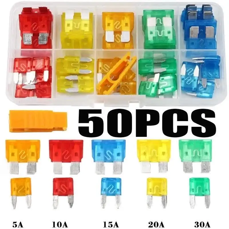Caractéristiques: 1., Fabriqué en alliage de zinc de qualité supérieure avec couvercle transparent pour une protection supplémentaire, une construction robuste et durable., 2., Ensemble mixte avec fusibles à lame standard 5A 10A 15A 20A 30A et mini fusibles, bon pour vos choix, ingénieux et pratique., 3., Emballé dans une boîte de rangement transparente, pratique à utiliser et facile à distinguer., 4., Installation facile et simple, avec une pince jaune pour l'installation et la désinstallation., 5., Il y a 5 couleurs pour les choix, code de couleur vive pour une identification facile. [Spécification]: 5A 10A 15A 20A 30A; Tension maximale 32V; Fusibles à lame standard et mini fusibles 1,1 x 1,57 x 0,4 cm/0,43 x 0,62 x 0,16 Taille de la boîte (L xlxh): env. Kit de fusible à lame ATO standard] - En alliage de zinc de qualité supérieure et en plastique, résistant à la corrosion et conductif optimal, protège votre véhicule et les appareils électriques contre les surcharges, les courts-circuits, etc Description: Il s'agit d'un ensemble de 50 fusibles standard et mini lames de voiture 5A 10A 15A 20A 30A, fabriqués en alliage de zinc de qualité supérieure... Fusible Voiture Standard Mini Fusible Fusible Standard 50Pcs Fusibles De Lame De Voiture Fusible Voiture Mini Attrayant et Convient à la plupart des voitures. Chine Prix bas 100/50 / 10pcs Micro Fusibles de voiture Type de [Fonction]: Le kit de fusibles à lame aide à protéger votre voiture et votre appareil électrique contre les surcharges ou les courts-circuits Emballage inclus: Fusible standard 5 * 5A Fusible standard 5 * 10A Fusible standard 5 * 15A Fusible standard 5 * 20A Fusible standard 5 * 30A Mini fusible 5 * 5A Mini fusible 5 * 10A Mini fusible 5 * 15A Mini fusible 5 * 20A Mini fusible 5 * 30A 1 * pince jaune 1 * boîte en plastique [Matériau de qualité supérieure]: Le fusible de la lame de voiture est en alliage de zinc de qualité supérieure avec couvercle transparent; Grande conductivité, et