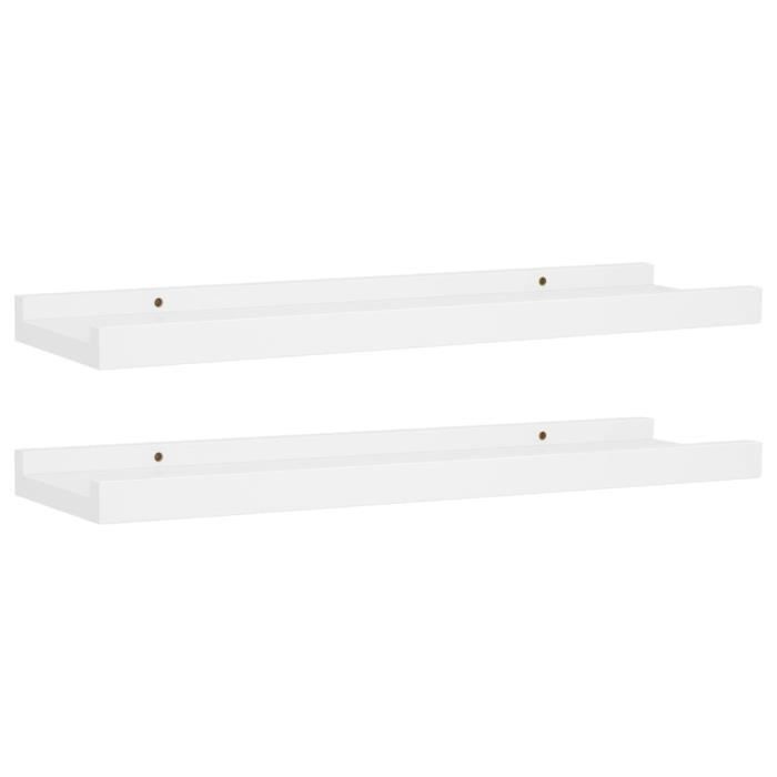 ✅ EXTRA FONCTIONS – Les étagères offrent non seulement des possibilités de décoration polyvalentes, mais aussi beaucoup d'espace de rangement pour les livres dans la chambre d'enfant, les pots à épices dans la cuisine ou les cadres photo dans le bureau. Lot de 2 étagères murales en bois Vous cherchez une solution de rangement ou de décoration naturelle pour votre salon ? Ou avez-vous déjà tous les murs pleins ? Cette étagère murale pratique en bois trouvera sa place dans n'importe quelle pièce et sur n'importe quel mur. Leur design épuré met en valeur vos objets de décoration, livres ou photos, tout en optimisant l’espace mural. Il peut être placé comme vous le souhaitez et vous donner un espace de rangement supplémentaire sur l'un de vos murs. Les bords avant offrent une protection supplémentaire pour empêcher les objets de tomber. Etagere Murale Blanca Bibliotheque Etagere Murale Design Idées De Décoration Intérieure French Decor Etagere Murale Pour Cadres Étagères flottantes Une façon naturelle de décorer Donnez à vos murs un aspect flottant avec ces étagères en bois. SoBuy KMB78-W Étagère Murale, Étagère de Rangement Suspendue, Porte... GARANTIE DE SATISFACTION - Si vous n'êtes pas satisfait pour une raison quelconque, nous offrons une garantie de remboursement à 100 %. Lot de 2 étagères murales Yvelique Le bord avant surélevé empêche les objets de tomber. Design minimaliste : Lignes sobres et blanches pour s’intégrer harmonieusement dans tout décor contemporain. Polyvalence : Idéal pour salon, chambre ou bureau, s’adapte à toutes vos envies d’agencement. Contenu de la livraison : vous recevrez 2 étagères murales de 43 cm de long avec 4 chevilles et vis pour un montage facile. Laissez vos cadres photo ou autres objets flotter sur les étagères.