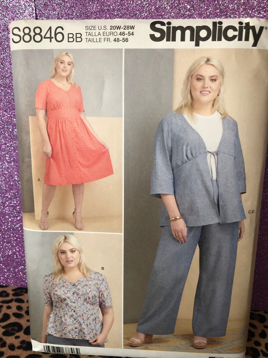 Tous les patrons de couture Simplicity sont conçus et imprimés aux États-Unis. MOTIF SIMPLICITÉ ~#S8846/R10138~Robe, haut, pantalon et veste pour miss/femme~ Ce patron comprend toutes les pièces nécessaires pour créer la garde-robe... Version Française Patron Simplicity S8845 by Mimi G Style – Hello Bloomette Le kit de patron de découpe contient des instructions en anglais et en français ainsi que des recommandations en tissu. Patron Robe Femme Patron N°516 Chemisier Col Officier. Tailles : 38-52 Patron Couture Femme Grande Taille These models of women's clothing can be made for sizes 38, 40, 14, 16 and 18. This sewing kit will help you make a versatile dress, matching jacket and wide... Conçues pour égayer votre silhouette, ces vêtements pour femme sont faciles à coudre et conçus pour être combinés avec vous-même ou avec d'innombrables options de votre propre collection. Ces modèles de vêtements pour femmes peuvent être fabriqués pour les tailles 38, 40, 14, 16 et 18., Ce kit de couture vous aidera à faire une robe polyvalente, une veste assortie et un pantalon large et un haut mignon.