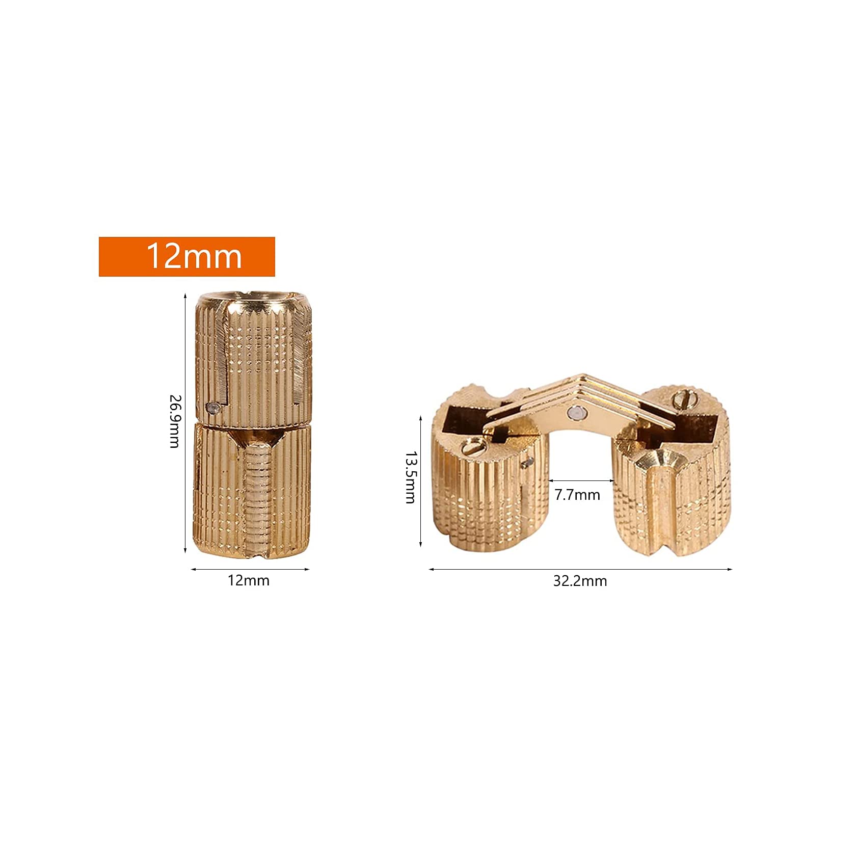 L'angle d'ouverture flexible de 180 degrés vous permet d'ouvrir ou de fermer la boîte à 0 - 180 degrés que vous souhaitez ; les charnières cachées avec un design fraisé les rendent complètement invisibles des deux côtés et bien dissimulées lors de l'utilisation Taille : 12 mm. Contenu du colis : 4 charnières à cylindre. Forme des Feuilles Cabinet Laiton Doré Poignées, Poignées d'Armoires en Lot De 4 Charnières Dissimulées En Laiton De 16 Mm Charnieres Dissimulees Pour Meubles Angle Douverture A 180 Degres 90984645 Ces charnières dissimulées en cuivre ont une grande capacité de charge, la capacité maximale de 2 pièces est jusqu'à 12 kg, très résistantes et durables. Non recommandé pour les projets lourds. Convient pour le matériel de boîte à bijoux, la table pliante, la porte d'armoire, l'artisanat, la boîte à vin, les petits meubles ou pour une utilisation sur tout autre bois, le plastique, le verre épais. Design du rail à rouleaux pour une ouverture régulière et silencieuse, les vis intégrées aident à fixer le positionnement, installation facile et pratique, il suffit de percer et d'insérer la charnière pour terminer Dimensions : diamètre : 1,2 x 1,2 cm., Hauteur : 2,7 cm. La charnière en cuivre cachée invisible est faite de matériau de cuivre de haute performance, antirouille, solide et durable. Charnière invisible avec un design... Angle ouvert maximum : 180 degrés., Quantité : 4 pièces.