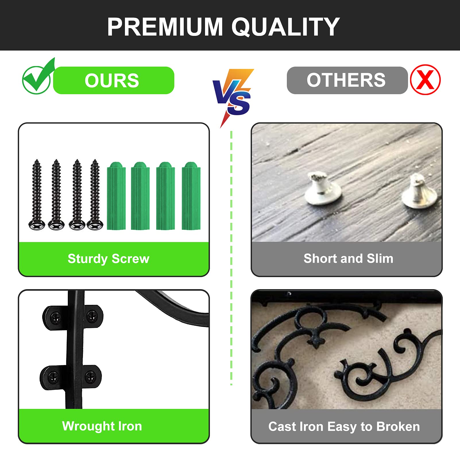 Les supports de suspension en fer forgé à la main peuvent facilement ajouter de la classe à votre mur intérieur ou porche, clôture, jardin, vous apportant une touche élégante et tendance à votre maison ou jardin Facile à installer : faites d'abord une position où vous voulez accrocher les crochets de suspension. 6 vis 6 x clous d'expansion., Conseils : 1., En raison des différentes méthodes de mesure, veuillez prévoir une marge d'erreur de 1 à 3 mm., 2., Si vous avez des questions sur nos produits, n'hésitez pas à nous contacter, nous sommes toujours prêts à vous défendre. Livré avec des vis et des ancrages muraux nécessaires pour l'installation, il peut être monté facilement sur un mur, une terrasse, une clôture, un salon, un jardin, un garage ou un balcon Lot de 4 supports de suspension pour chariot Unistrut, supports de - Forme : courbée avec tête en spirale. Caractéristiques : - Type : suspension murale pour plantes. Superbe dans une variété d'environnements différents Ajoute élégance et beauté à votre maison ou jardin. Matériau de qualité supérieure : nos supports de plantes suspendues sont fabriqués en acier inoxydable robuste de haute qualité. Insérez ensuite les chevilles dans les trous et fixez enfin les crochets muraux avec des vis. Le cadre en métal thermolaqué se combine avec des patins antidérapants, assurant une stabilité supérieure sans rayer votre sol. Dotée d'un grain de bois simulé, l’étagère à plantes verticale peu encombrante est un choix judicieux pour n’importe quelle pièce - Robuste et durable., - Couleur : noir. GXF Lot De 2 Crochets à Suspendre En Métal Robuste De 30,5 Cm Pour Paniers De Fleurs, Plantes, Mangeoires à Oiseaux, Lanternes, Carillons éoliens, Appliques Murales, Capacité De Poids Jusqu'à 27,2 Kg SUPPORTS DE SUSPENSION pour plantes, support mural en fer forgé pour... - Capacité de charge maximale : 27,2 kg. À visser dans les poteaux de clôture en bois, les poteaux de terrasse ou même les murs intérieurs. - Idéal pour les herbes, les salades et les fleurs annuelles. - Vis haute résistance. Le design de fixation plus stable permet de supporter jusqu'à 22,7 kg/pièce