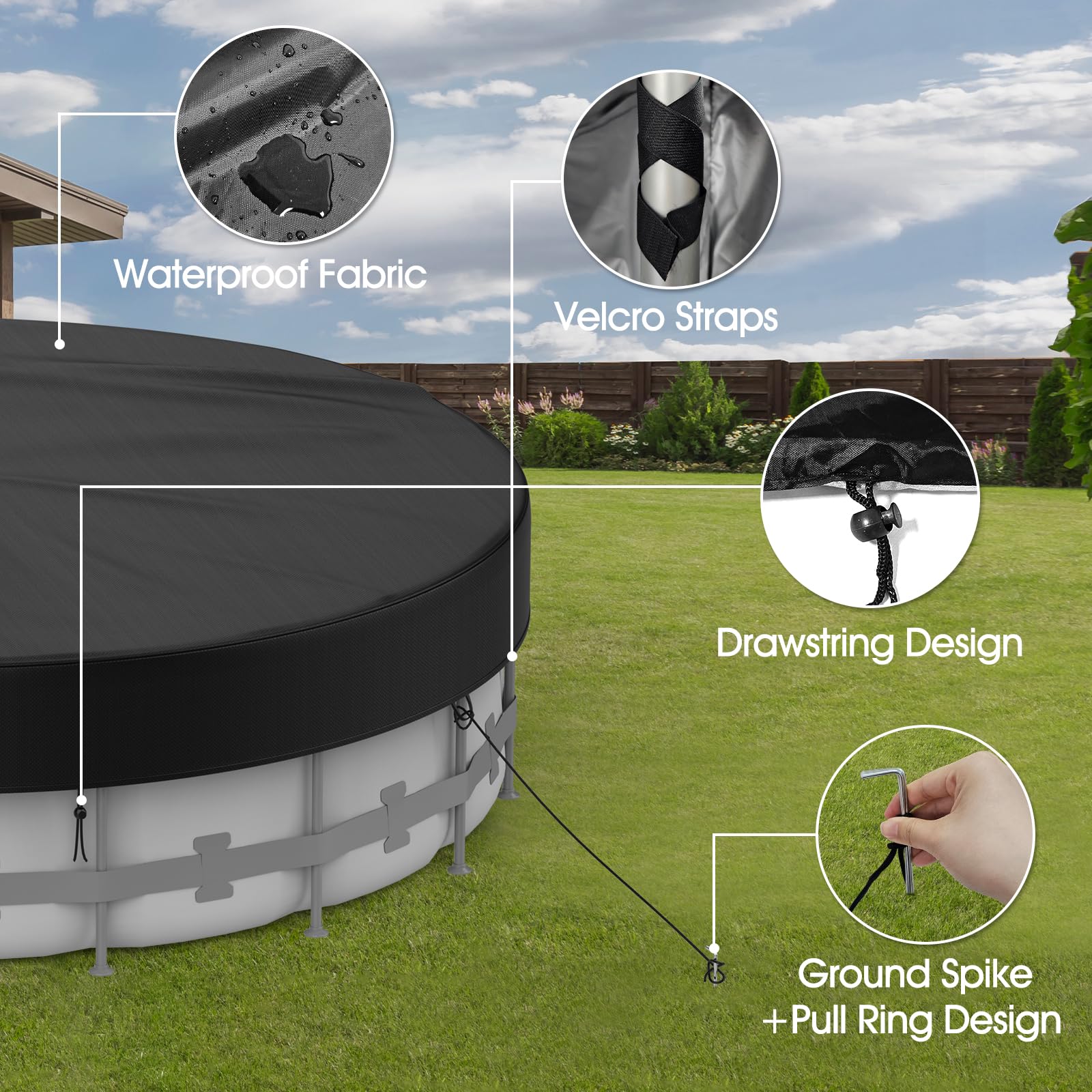 2 treuils de serrage robustes et durables. Protection complète contre les intempéries pour toutes les saisons : la bâche de piscine ronde Landrip est fabriquée à partir de matériaux Oxford de haute qualité et offre une protection supérieure contre la pluie, le soleil et les débris Design impeccable et durable. Bâche Piscine Ronde Extérieur LXKCKJ Bâche De Protection Ronde De 6,3 M Pour Piscine Hors Sol, Housse D'hiver Avec Cordon De Serrage Pour Augmenter La Stabilité, Bâche En Polyéthylène Idéale Pour L'eau Et La Poussière (noir Bâche Piscine Hiver Ronde Les coutures sont également importantes dans les couvertures de piscine hors sol : si elles sont mal faites, elles laisseront passer la saleté. Description du produit Épaisseur et durabilité améliorées. Avec sa construction robuste, cette bâche est conçue pour supporter un froid extrême aussi bas que -25 °C, assurant que votre piscine reste impeccable et prête à l'emploi lorsque le temps se réchauffe. En tant que clé d'un kit d'hivernage efficace pour piscine hors sol, notre bâche d'hiver protège votre piscine des précipitations, des débris et même des fortes chutes de neige. Avertissement De Sûreté Comprend des instructions de sécurité pour une installation et une utilisation correctes. Contenu de l'emballage : notre kit comprend un câble robuste, robuste et durable avec deux treuils de serrage, sécurisés par des œillets métalliques indéchirables. La bâche de piscine ronde est durable et ne sera pas endommagée ou déchirée en cas de mauvais temps, empêchant les feuilles, les déchets d'entrer et de contaminer votre piscine efficacement, tout en gardant la piscine sèche et prolongeant la durée de vie de la piscine, vous permettant de profiter de la natation la prochaine fois et de passer moins de temps à la nettoyer. Amenagement Terrasse Bois Terrasse Bois Piscine Hors Sol Et Enterrace Exemple Of Amenagement Terrasse Bois Le design d'emballage plus épais rend la housse plus durable. Notre colis comprend également des instructions d'installation claires et complètes (français non garanti). Wave Treuil Bâche Treuil Pour Piscine Hors Sol Hiver Pour Sécuriser... Notre colis comprend également des instructions d'installation claires et complètes qui garantissent un ajustement sûr et stable, offrant une protection fiable optimale pour votre piscine et autres meubles de jardin. Matériaux de haute qualité et indéchirables : la bâche de piscine est fabriquée en matériaux de haute qualité avec un nombre dense de mailles. Avec un treuil spécialement moulé inclus permettant un fonctionnement fluide, notre construction portable et pratique permet de serrer le câble sans effort et de garantir un processus d'installation sans tracas. Ils assurent un maintien sûr et stable, offrant une protection fiable optimale pour votre piscine.