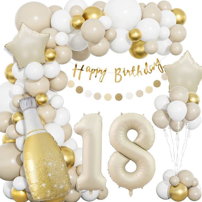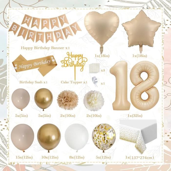 【18., Décorations d'anniversaire Fille】Les Decoration Anniversaire 18 ans Fille,Ballon or 8*12inch,5*5inch Gold Balloon,Ballon blanc 10*12inch ,Ballon blanc 4*5inch,18*12inch Sand White Balloon,Ballon blanc sable 6*5 inch,Ballon abricot 8*12inch,Ballon abricot 3*5inch,1 ballon étoile de 18 inch et 1 ballon coeur ,2* Ballons numérotés crème,1*tirette anniversaire,1*Chaîne de ballons,4 ballons à paillettes de 12inch,2*Fleurs en papier beige,1*rondes bohémiennes,1*gâteau joyeux 18e anniversaire Durable, sûr et fiable. Supportant l'air et l'hélium, notre ballon en or noir robuste n'est pas facile à éclater, très résistant et dure longtemps. Déco Anniversaire Or Et Blanc Décoration Anniversaire Kit Beige Blanc Or - Ballons, Banderole, Couronne, Nappe - Pour Fête Femme/fille - Réutilisable Kit Déco Fête Complète 【Ballons de haute qualité Ballon 18 ans Fille】Ce ballon anniversaire 18 ans Fille Tous les matériaux de l'ensemble de guirlandes de ballons sont en latex de haute qualité, sûr, non toxique et respectueux de l'environnement. Anniversaire Fille 18 Ans Kit Complet Réutilisable Déco Anniversaire Beige Blanc Or - Kit Birthday Decoration 【Facile à assembler Ballon 18 Ans】L'assemblage de Ce 18 ans Anniversaire Fille peut prendre entre une heure et trois heures. Tu auras un Décoration Anniversaire 18 ans inoubliable Vous devez les gonfler et bricoler ce que vous aimez. Deco Anniversaire 18 Ans Beige,18 Ans Décorations Anniversaire Or Blanc...