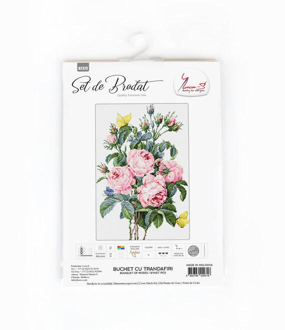 Les ensembles comprennent la toile de Zweigart, un fabricant allemand de tissus qui opère depuis plus de cent ans. Bouquet de roses - B7006 de Luca-S - Kit - point de croix compté - Toile Aida 6.3 points au cm - fils Anchor 30 couleurs - ouvrage terminé : 10 x 16 cm Dimensions : 9,5 x 15,7 cm ou 10 x 16 cm , Coutures : 60 x 99 cm , Couleurs : 24 , Filetage : ancre , Tissu : Zweigart 16 carats., AIDA (100/101) Broderie Point De Croix Luca Kit Tableau Luca-S Point De Croix Trio De Roses En Vase LB587 Luca's Broderie Kit de broderie au point de croix Luca-S Ce kit de broderie est idéal pour ceux qui souhaitent s’initier au point de croix sans se ruiner. Chaque élément est pensé pour faciliter la prise en main : la toile Aida 25 vous aide à positionner vos points avec précision, tandis que la palette de 33 couleurs Anchor vous permet de créer un bouquet de roses aux nuances subtiles et... Adaptateur Universel 36mm Jante Kit Point De Croix Dimensions - Roses Sur Chaise Blanche, Création Broderie Complète Kit Point De Croix Compté Niveau de compétence : 3/5 Vous aurez également besoin d'accessoires supplémentaires et d'instructions dans de nombreuses langues.