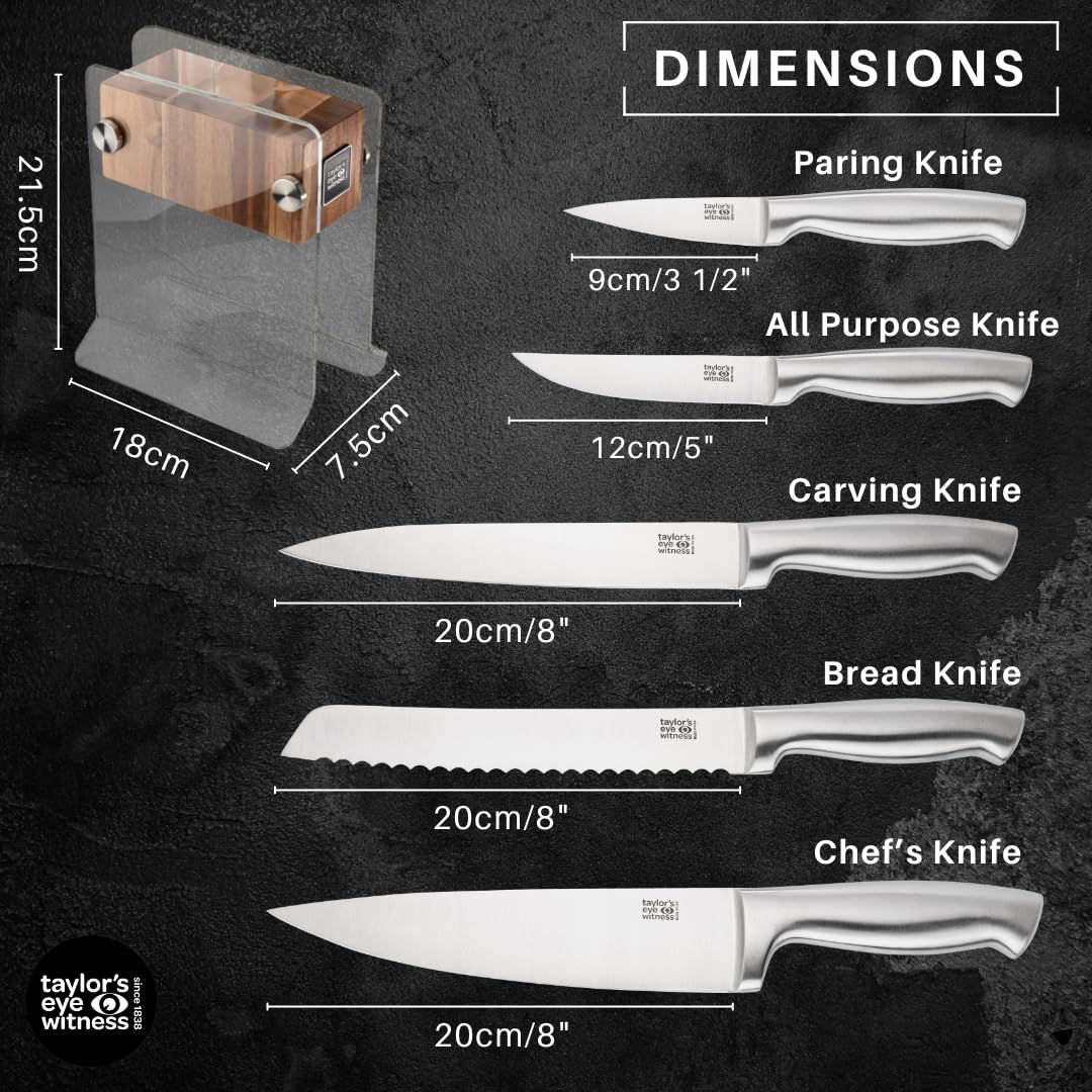 Taylors Eye Witness a été fondée par John Taylor au cours des premières années du XIXe siècle en tant que concepteurs et producteurs de couteaux de cuisine, couteaux de poche, ciseaux et aiguiseurs. Cet élégant ensemble en argent promet d'offrir une sélection d'outils sur lesquels vous pouvez compter pour le temps pour venir avec un design qui associe des styles classiques et modernes sur chacun des 5 couteaux tranchants, plus un éplucheur en céramique pour plus d'aide dans la cuisine. Taylor's Eye Witness - Küchenmesser Set 6-teilig Contrôle de précision : une gamme de cinq outils de cuisine utiles, 9 cm, 12 cm utilitaire, pain de 20 cm, couteau à découper de 20 cm et couteaux de chef de... Vous pouvez être sûr qu'il y a un article pour chaque tâche, que vous ayez besoin de préparer de la viande ou des dés de légumes. Bloc Couteaux Cuisine Taylors Eye Witness : Meilleurs 20 Produits De Couteaux De Cuisine Couteau Cuisine Retrouvez notre large et diversifiée gamme de couteaux, lames et ustensiles de cuisine dans une superbe variété de matériaux (chrome, cuivre, laiton, titane, marbre, acier inoxydable) et de couleurs (noir, blanc, pierre, argent, or rose, rouge, gris, irisé). Taylor's Eye Witness se concentre sur la fabrication de couteaux incroyables et durables pour les personnes du monde entier, que vous soyez un étudiant à la recherche d'ustensiles pour votre dortoir ou si vous êtes une famille de 5 à la recherche de la pièce manquante à votre collection de cuisine. Nos couteaux, ustensiles de cuisine et accessoires de stockage sont synonymes de qualité et de style et ne vous décevront pas. La série Brooklyn Brass du fabricant de couteaux anglais Taylor's Eye Witness propose des modèles d'un rapport qualité/prix intéressant. Les lames aiguisées et creuses sont dotées d'un revêtement antibactérien. Le manche en plastique SoftGrip incurvé, qui épouse les contours de la main, et un solide pommeau en laiton aident à éviter de glisser pendant le travail. Avec ce set de...