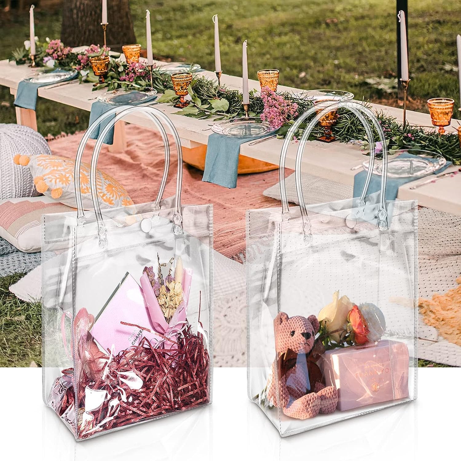 Design étanche : ce sac cadeau en PVC peut être facilement essuyé avec de l'eau, ce qui est plus facile et plus atmosphérique que les sacs en plastique ordinaires et a une plus grande capacité à résister aux objets. Matériaux de haute qualité : fabriqué en plastique PVC transparent de haute qualité, durable et léger, poignée solide, réutilisable. Amylove Lot de 24 sacs cadeaux réutilisables en plastique PVC transparent avec poignée pour shopping, vente au détail, boutique, mariage, anniversaire... Sac Cadeau Transparent Sacs Cadeaux En Plastique Transparent Avec Poignée Sac Cadeau Panier Garni Vide Sac De Cadeau En Plastique Zinaroty Lot De 16 Sacs Cadeaux En Taille : ce produit comprend 16 sacs cadeaux transparents, il y a deux tailles au choix, 16 x 15 x 7 cm, 25 x 18 x 7 cm.