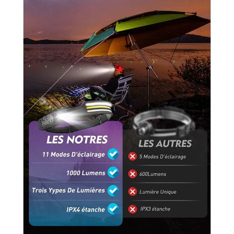 Sélection multi-modes et mode zoom : la lampe frontale rechargeable dispose de 5 modes au choix pour s'adapter à différentes scènes, appuyez sur le bouton d'alimentation pour faire défiler les options, telles que le faisceau principal, tous les faisceaux, le faisceau latéral, le SOS rouge et le bleu stroboscopique. Walfront Lampe frontale rechargeable, 19 LED 28 000 lumens, lampe frontale lumineuse avec zoomable, détecteur de mouvement, lampe frontale rechargeable par USB, étanche pour la course à pied, la nuit, la pêche, la randonnée, le camping Xhp70 Lampe Torche Led Puissante Ultra Lumineuse 10 000 Lumens Rechargeable Avec 5 Modes D Phare et projecteur LED super lumineux à large faisceau : la lampe frontale la plus lumineuse à porter est composée de 19 lumières qui fournissent 28 000 lumens maximum, ce qui garantit que vous pouvez voir clairement tout autour de vous, que vous soyez la pêche de nuit, le jogging, la course, la randonnée, le camping en plein air, le rang de nuit, l'éclairage de réparation, l'aventure, la construction de nuit et d'autres activités de plein air. Mode capteur pris en charge : la lampe frontale LED accessoires de camping est équipée des derniers capteurs intelligents. Vous n'avez pas besoin de vous inquiéter s'il pleut ou neige soudainement. Contrairement aux phares traditionnels, il a une meilleure vue, et vous pouvez également utiliser son projecteur pour vous concentrer sur des zones spécifiques. Il est idéal pour les amateurs de plein air comme équipement de camping. Et la lampe frontale peut supporter 4 à 10 heures d'utilisation à long terme dans différents modes. Étanche et multifonction : la lampe frontale est étanche IPX4, empêchant les éclaboussures d'eau sous tous les angles. Après avoir activé le mode de détection, agitez votre main devant le phare pour contrôler l'éclairage du phare ou l'éteindre. Frontale Rechargeable Mini Lampe Frontale Portable à LED XPE COB, Zoomable, Rechargeable Par USB, Batterie Intégrée Arkenx Lampe Frontale Phare et projecteur LED à faisceau large super lumineux : la lampe frontale la plus lumineuse à porter se compose de 19 lumières qui fournissent 28 000 lumens maximum, ce qui garantit que vous pouvez voir clairement tout ce qui vous entoure, que vous soyez pêche de nuit, jogging, course, randonnée, camping en plein air, rangée de nuit... En outre, ce phare prend en charge le mode zoom, vous pouvez régler la taille du cercle lumineux de zoom appropriée et la plage d'irradiation selon vos besoins. Dans n'importe quel mode d'éclairage, appuyez sur l'interrupteur du capteur pour activer le mode de détection.