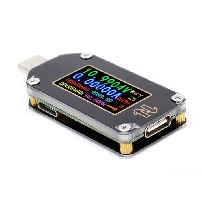 Contenu de test : tension de la batterie, courant, capacité de décharge (dix groupes de données au total) Branchez le chargeur 5 V dans la prise USB et le téléphone portable dans la prise femelle pour lire directement les paramètres de tension et de courant. Mesurez la qualité du câble MicroUSB : Branchez un chargeur 5 V à un téléphone portable ou à d'autres appareils dans la prise, mémorisez la tension, puis branchez un câble micro USB du chargeur 5 V au port micro USB de l'appareil pour mémoriser la tension. Plage de puissance : 0-19,999 mAh. Convient pour câble USB, chargeur de voiture ou chargeur de panneau solaire, etc. Cikonielf testeur de courant Testeur USB DC Digital Intelligent Plus de précision, les paramètres actuels ne sautent pas. Puissance mobile de sortie mAH peut être détectée. Peut contenir le courant et la tension du téléphone, de la banque d'alimentation mobile, etc., test Description: Affichage de la tension et du courant et des données mAH pour un affichage facile. Précision : plus ou moins 1 %. Plus la différence de tension est petite, meilleure est la qualité du câble micro USB. Le testeur utilise une nouvelle génération de puissance quatre semi ~ convertisseur intégré double boucle IC, avec une référence de bande de précision, Précision de la plage, haute précision, performance stable et fiable, forte capacité anti-interférence, haute température peut être Échantillonnage de courant 25 milliohms, moins de pertes. Testeur De Courant Usb Testeur D'alimentation USB, Compteur De Puissance Universel, Compatible Testeur De Chargement Usb Ziyan USB Charger Voltmeter Power Tester ; €12.44 ; FREE delivery Thursday, 27 November on your first order to France, Belgium and Luxembourg. Order within 23 hrs... Courant de test : 0,05 A - 3,50 A. Notez que cette mAh est beaucoup plus petite Avec la fonction d'étalonnage précise du courant, la précision actuelle est plus élevée. La double alimentation du connecteur USB et du port micro USB peut détecter la qualité du câble micro USB. Perte de ligne : environ 0,1 Ω.