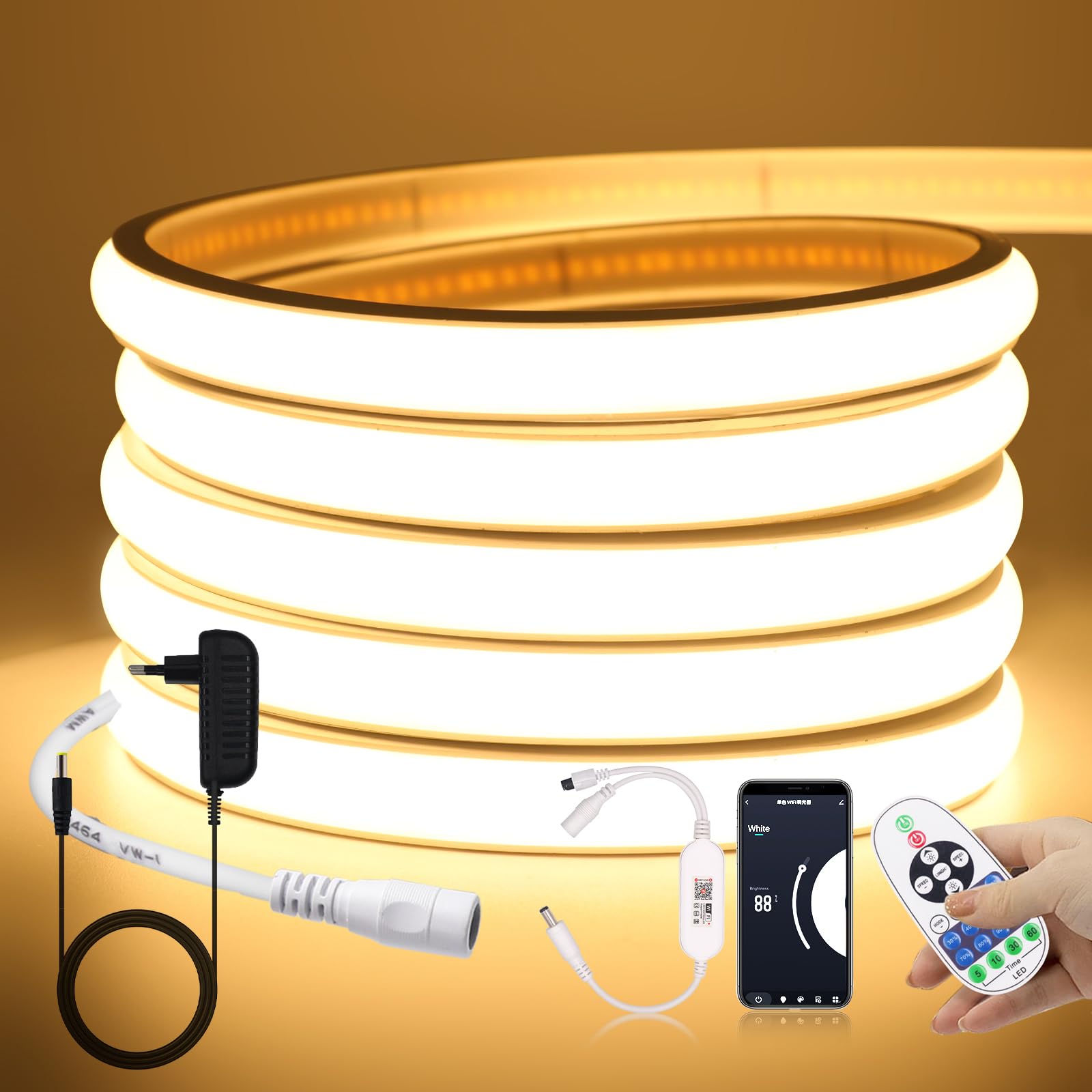 Cob Led Strip KISUFU COB Ruban LED 24V, 320LEDs/M étanche IP65 Flexible 2 PIN Bande LED Lights Strip Pour TV, Fête, Projets De Bricolage (contrôleur Et Alimentation Non Inclus Ruban Led Wifi Flexible led 24v, haute lumière led 320 led /m bande avec adaptateur secteur Et wifi 23 touches Contrôleur Caractéristiques : 1) type de led: cob led 2) quantité de led: 320 led/m 3) tension de fonctionnement (entrée): 24v 4) indice de rendu des couleurs (cri): 85ra 5) consommation d’énergie (puissance): 8-10 w/m 6) degré imperméable: ip68 7) température de travail: de -20 degrés Celsius à 40 degrés Celsius 8) luminosité: 900lm /m 9) couleur: blanc froid (6000-6500k); Blanc naturel (4000-4500k); Blanc chaud (3000-3500k) 10) peut être coupé tous les 5 cm (nouvelle technologie qui permet de couper tous les 5 cm au lieu de chaque mètre comme dans d’autres bandes). Illumine la vie domestique variée, lumières diy pour les couloirs, escaliers, chemins, fenêtres. Rubans LED pour piscine IP68 | LED oent 5M Ruban Led 12V Flexible Bande Led Néon Lumière Chaude Étanche Ip65... L'installation est rapide et facile, il peut être coupé avec un marqueur (tous les 5 cm), le bouton 23 kyes vous permet de contrôler facilement la bande lumineuse et vous pouvez connecter le wifi pour le contrôler. luktix Ruban LED COB 2M, Bande LED Blanc Froid 6000K, Bande LED COB Dimmable 24V, CRI92, Largeur Si vous trouvez un problème, contactez - nous et nous ferons de notre mieux pour vous aider à le résoudre. Super lumineux: C'est la dernière bande LED COB, super lumineux, faible consommation d'énergie, économie d'énergie, respectueux de l'environnement, haute intensité lumineuse et haute fiabilité, facile à installer. Il illumine l’utilisation de décorations colorées pour les hôtels, théâtres, clubs, centres commerciaux, festivals et spectacles. FindTheDeal : découvrez sans effort les offres de shopping sur FindTheDeal. Applicable pour la décoration de voiture, l’éclairage de contour ou l’éclairage de bord.