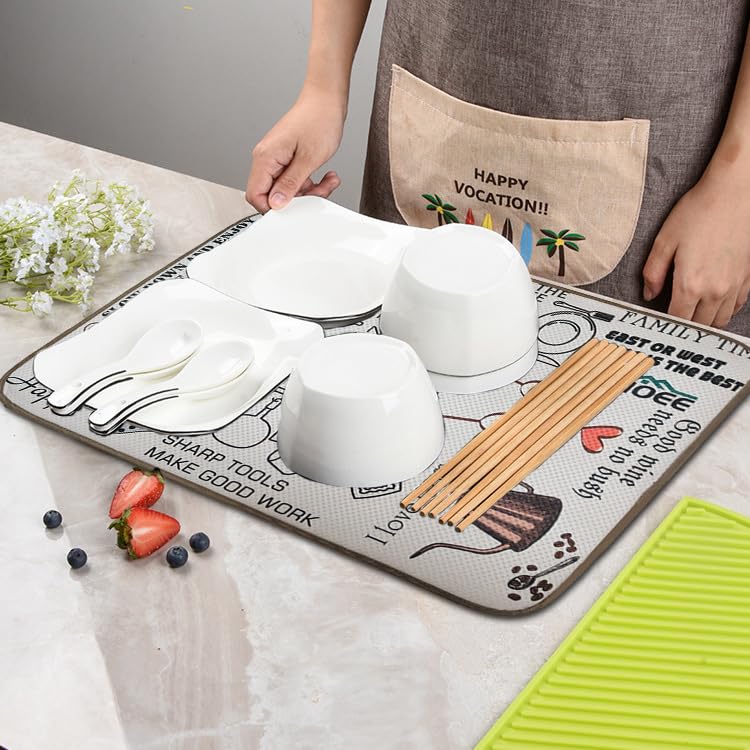 【Pliable et suspendu】Le tapis à séchage rapide peut également être accroché au mur ou simplement plié et rangé dans un tiroir ou une armoire lorsqu'il n'est pas utilisé pour économiser de l'espace. Lot de 2 tapis de séchage en microfibre pour cuisine, égouttoir à vaisselle, tapis de séchage... Un tapis drainant absorbant est indispensable pour les caravanes ou les petites cuisines. Paramètres de spécification : Taille du produit: Petite taille : 50 × 38 cm Grande taille : 60 × 45 cm Pièces : deux/set Liste des produits : Tapis de séchage*2 Tapis De Bar Lot De 2 Tapis De Séchage En Microfibre, égouttoir à Tapis Absorbants 2 En 1 - Égouttoir à Vaisselle Et Tapis De Séchage Pliable En Microfibre 61cm X 46cm Fiche Technique Et Prix Au Maroc Description : Ces tapis d'égouttoir d'évier sont faciles à nettoyer et peuvent être lavés à la main ou en machine. Il est recommandé de les laver à la main, de les laver seulement une fois par semaine et de les suspendre pour les sécher après utilisation.