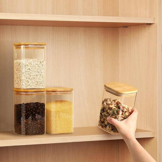 Dimensions : hauteur : 16,9 cm, largeur : 8,75 cm, diamètre : 8,75 cm Idéal pour être réutilisé et recyclable Chaque bocal est livré avec des couvercles à vis WayEee Boite de Rangement Cuisine Lot de 10, Bocaux Hermetiques Alimentaires en Plastique Passe au lave-vaisselle : les bocaux en verre avec couvercles et cuillère en bambou sont fabriqués en verre borosilicate durable, et ils sont faciles à laver... Bocal De Rangement Ikea Promo Les 4 Bocaux En Verre Carrés Couvercle Bambou Chez Stokomani Boite De Rangement Pour Cuisine Ne passe pas au lave-vaisselle à la main uniquement dans de l'eau tiède