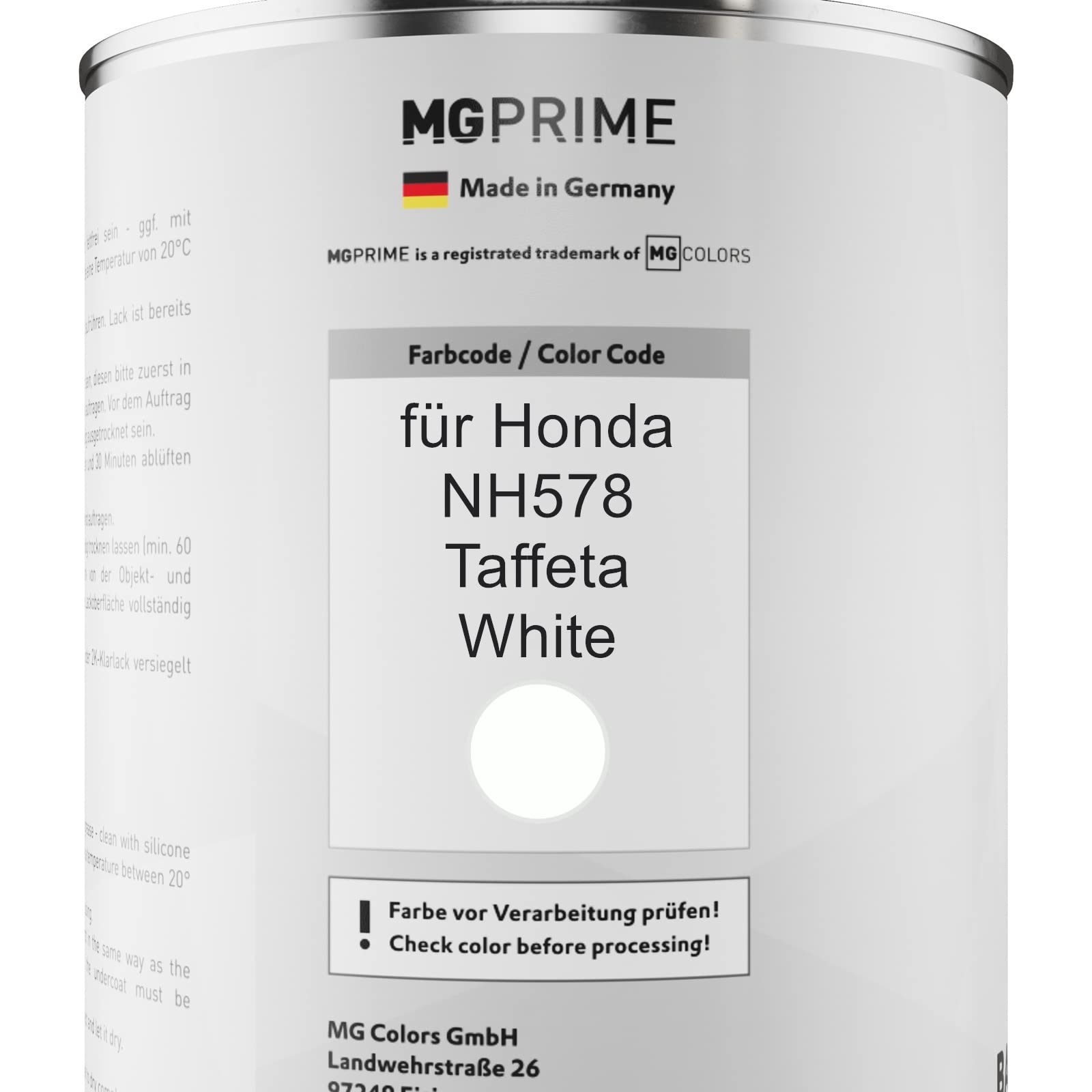 Recouvrez ensuite la couche de base avec un vernis clair 1C ou 2C en suivant la même procédure. Modèle du véhiculeCette peinture a été utilisée entre autres pour les véhicules suivants, départ usine: Pour Honda Accord (1998 - 2008), Pour Honda Acty (1999), Pour Honda Capa (2000) Ford Focus 7325 Manyetik Gri Sprey Rötuş Boyası Vernik Astar - en ucuz fiyata sa Pour Honda Civic (1998 - 2002), Pour Acura CL (2001) (La boule de mélange doit être audible). Convenu de la livraison 400 ml bombe aérosol de couche de base pour Honda NH578-C Taffeta White L'objet cible doit avoir une température de 20°C à 25°C. Régulation des COVAvec l'achat, vous acceptez le règlement COV applicable 2004/42/CE ou 199/13/CE. (Le temps de séchage dépend fortement de l'objet et de la température extérieure. MG PRIME Peinture Voiture Bombe Aérosol Pour Honda NH578 Pouvoir couvrant très élevé grâce à une bonne teneur de pigments dans la peinture Pouvoir couvrant très élevé grâce à une bonne teneur de pigments dans la peinture. Séchage rapide, excellente adhésion et précision des couleurs extrêmement élevée. Vous trouverez autres informations dans le descriptif du produit. Attention: La peinture doit être recouvrir du vernis clair Après la dernière couche de peinture, laissez la couche de base sécher complètement (environ 60 minutes). Agiter l'aérosol pendant au moins 2 minutes avant l'utilisation. buse de tête de pulvérisation réglable Ensuite seulement, appliquez 1 à 2 couches de la base pour couvrir. Séchage rapide, excellente adhésion et précision des couleurs extrêmement élevée