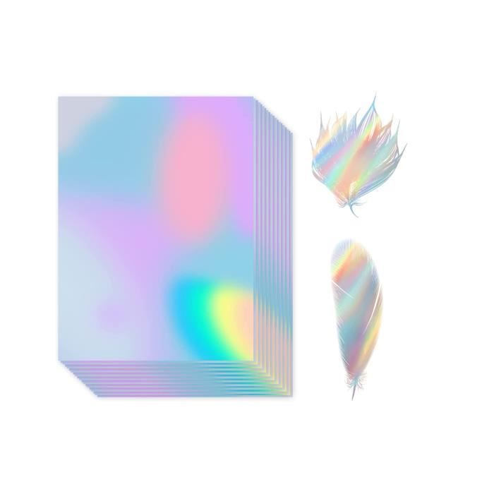 Description du produit Description du produit: Matériau: BOPP Quantité: 36 feuilles Dimensions: 30*21cm Couleur: Film vedette*4 Film circulaire*4 Film à pointe fine*4 Film de verre brisé*4 Masque végétarien*4 Film flocon de neige * 4 Film de feux d'artifice*4 Film étoile de sable fin*4 Contenu de l'emballage : Grattoir * 1 32 feuilles filmholographique transparent Belles couleurs vives qui semblent changer sous différents angles. Bon Effet de Visualisation: Ces films transparents holographiques ont une surface lisse, montrant différentes couleurs et reflets selon la lumière et l'angle, ce qui les rend beaux et charmants sous la lumière et la lumière du soleil,ajoutant un charme élégant à votre décoration. Papier Autocollant Ipriante A4,A4 Papier Adhésif Blanc,Étiquette CRESZZLE 32 feuilles de film adhésif transparent A4 (210 x 297 mm), papier holographique, film holographique, film hologramme, irisé et pailleté autocollant, étanche, 4 motifs – DIY QWORK® 20 Feuilles de Papier Holographique Imprimable... Facile à utiliser : ces stratifications holographiques transparentes sont conçues avec un dos autocollant, faciles à couper avec des ciseaux ou une machine à découper, et elles sont pratiques à utiliser, vous pouvez les couper dans n'importe quelle forme et les coller sur la plupart des surfaces sans laisser de résidus collants. Papier Autocollant A4 Chzimade-Ruban Adhésif Double Face A4, Feuille Autocollante Transparente, Papier Autocollant Feuille Holographique Autocollante Convient pour le passage à travers un lamineur. Contenu de l'emballage: 32 feuilles de film holographique transparent,disponible en 8 motifs : Masque uni, masque étoile, masque pointe fine, masque cercle, masque feu d'artifice, masque flocon de neige, masque verre brisé, masque étoile sable fin, grattoir. Avertissement De Sûreté NO Acidea Lot de 24 feuilles de papier autocollant holographique en vinyle...
