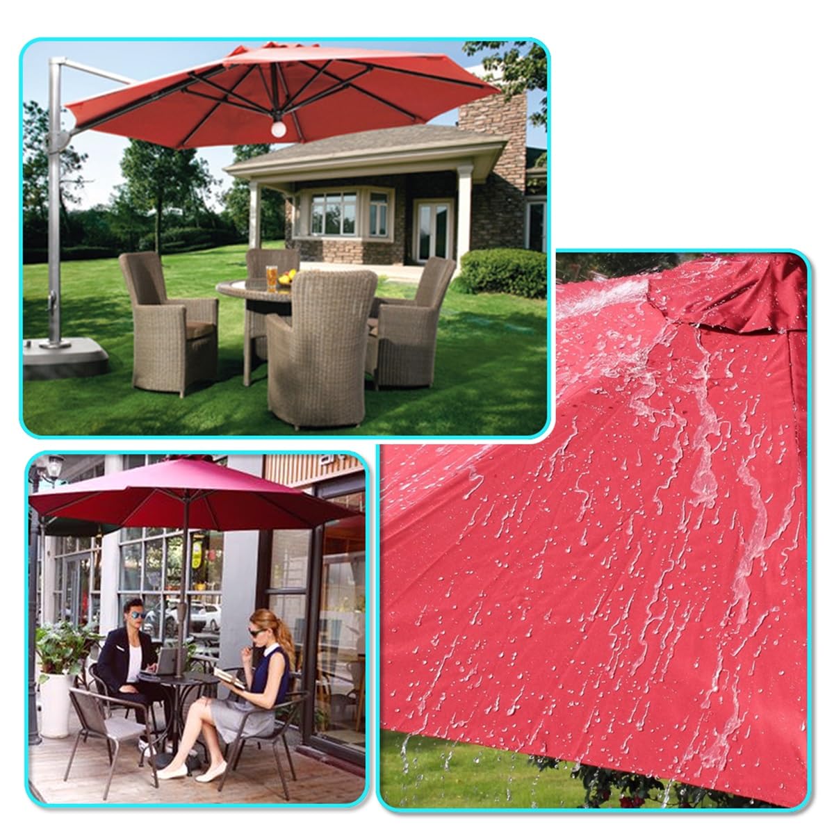 ☑ Dissipation de chaleur par ventilation: la conception de la ventilation supérieure assure la ventilation et la stabilité. ✿✿✿ Bienvenue~ Vous avez hâte d'avoir un tissu de parapluie préféré dans l'été chaud ? Vous êtes inquiet que la toile de votre parasol n'est plus brillant par le vent et le soleil ? Alors cette housse de parapluie sera un bon choix~ Elle a non seulement beaucoup de couleurs pour vous fournir plus de choix, mais aussi une bonne qualité. Toile Pour Parasol Extérieur Tissu De Remplacement Pour Parasol Déporté/Toile De Rechange Pour Parasol Taupe 350 Cm 65200 Toile De Remplacement De Parasol La housse de parapluie est fabriquée en tissu polyester résistant aux UV, imperméable et anti-corrosion, qui n'est pas facile à décolorer et durable. Nous vous souhaitons une vie heureuse! Toile de rechange pour parasol de terrasse de 4 m à 8 baleines, tissu imperméable et anti-ultraviolet pour colonne centrale banane dans le jardin ou le sable (gris clair, 4 m ☀☀☀ SpécificationsMatière : PolyesterDiamètre : 2m/6., 5ft, 2., 7m/9ft, 3., 0m/10ftBaleines : 6 baleines, 8 baleinesCouleur : Différentes couleurs au choix~❣❣❣ Contenu de l'emballage 1 x Housse de parapluie de remplacement➼➼➼ Note1) Veuillez noter qu'il peut y avoir une différence de couleur en raison de l'emplacement différent des articles et de la différence de pixels et de moniteurs utilisés pour prendre les photos. Design élégant: le design de bon goût vous permet de vous démarquer sur la plage et est le complément parfait à votre terrasse. Offrez ombre et confort à vos espaces extérieurs Installation facile: montage facile sans outils. ☑ Utilisations multiples: peut être utilisé dans les terrains de camping, les plages, les terrasses, les piscines, les terrasses, les terrains de jeux, les pergolas, les serres, les marchés, les terrasses et d'autres espaces extérieurs pour fournir de l'ombre. Offrez ombre et confort à vos espaces extérieurs. Toile De Rechange Pour Parasol Extérieur 6 Baleines-8 Baleines, Housse... Les particularités de la toile pour parasol déporté 3 x 3 m orientable : Toile inclinable et orientable, facilement remplaç ☑ Lavable: facile à sécher après la pluie. ☑ Design élégant: le design de bon goût vous permet de vous démarquer sur la plage et est le complément parfait à votre terrasse.