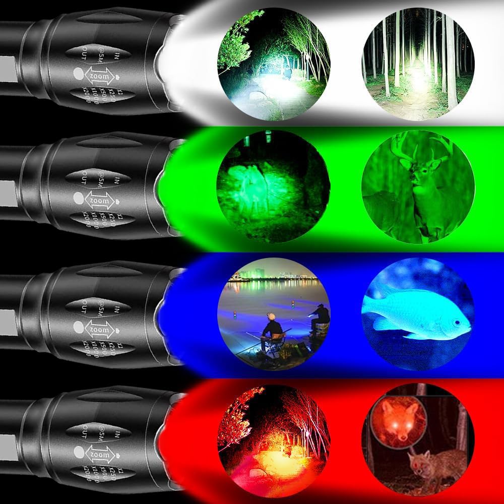 Zoom réglable : contrôle rotatif 2 modes de longueur focale : projecteur/projecteur. Vous obtiendrez une lampe de poche LED puissante et zoomable avec quatre lumières colorées – rouge, verte, bleue et blanche – afin que vous puissiez utiliser la lumière de la bonne couleur pour mieux correspondre à votre humeur ou à votre tâche Nous vous proposons un choix varié d La lampe de poche LED peut être largement utilisée pour l'éclairage quotidien, les pannes de courant, les urgences, etc. (Remarque : veuillez ne pas mettre la lampe de poche dans l'eau). Rechargeable par USB : la lampe torche LED dispose d'une batterie rechargeable intégrée, économique et respectueuse de l'environnement. Imperméable et durable : la lampe de poche multicolore est fabriquée en alliage d'aluminium avec une excellente dureté et résistance à l'usure. (Remarque : n'hésitez pas à nous contacter si vous avez des questions). Vous pouvez la charger avec un chargeur de voiture, un ordinateur, une banque d'alimentation, une prise USB, etc. 【Utilisations multiples】Le kit comprend : 1 lampe de poche rechargeable, 1 câble USB. Taser Electrique Defense Puissant Lampes Torche Et Lampes De Poche LED Pour Camping Et Randonnée Lampe Laser Changement quatre couleurs : son design unique de lumière changeante en quatre couleurs - blanc, bleu, vert et rouge - permet de changer la source lumineuse... Lampe Frontale Super Lumineuse, Lampe Torche LED Rechargeable Lampe Frontale LED avec 6 LEDs