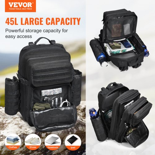 Sac à dos militaire 3P tactique 45 L Sac à dos Armée 3 jours Sac à dos Molle Sac à dos Range Bag Sac à dos polyvalent et durable permet aux amateurs de plein air de transporter confortablement les essentiels et plus encore avec son design multi-compartiments. Composé de nombreuses poches et pochettes à fermeture éclair pour y ranger tout votre matériel. Il possède une Capacité de 45L. Ce sac à dos militaire détient également des sangles de compression ergonomiques et réglables avec attaches auto-agrippantes pour une utilisation plus confortable Vous souhaitez avoir des renseignement sur ce produit ? N Ajustement sûr et confortable : les fermoirs de ceinture de poitrine et de hanche réglables permettent un ajustement sûr et un confort accru. Plusieurs poches : ce sac dispose d'un compartiment principal spacieux avec fermeture éclair, de poches en maille et de compartiments de rangement à fermeture éclair sur le devant. Résistant à l'eau : ce sac à dos tactique militaire est fabriqué en tissu Oxford 600D durable et résistant à l'eau. Idéal pour une utilisation en intérieur et en extérieur, y compris le camping, la randonnée, la chasse, les événements sportifs, etc. Nos bretelles rembourrées et réglables soulagent la pression de vos épaules lorsque vous portez de lourdes charges. Très pratique et pratique. Le compartiment principal dispose de deux poches et d'un compartiment inférieur avant avec boucles élastiques de rangement et rétention des clés. Sac A Dos Tactique Sac à Dos Sniper N°1 45 Litres Noir Cam Toe Pro Tactique Militaire Pdf Noir 45L Matériaux de haute qualité : le sac à dos militaire est fabriqué en polyester 900D, le sac à dos tempête tactique est renforcé et double couture à... LHI Sac à dos tactique militaire pour homme et femme 45 L Sac à dos d'assaut 3 jours Grand sac à dos avec système Molle – Crème