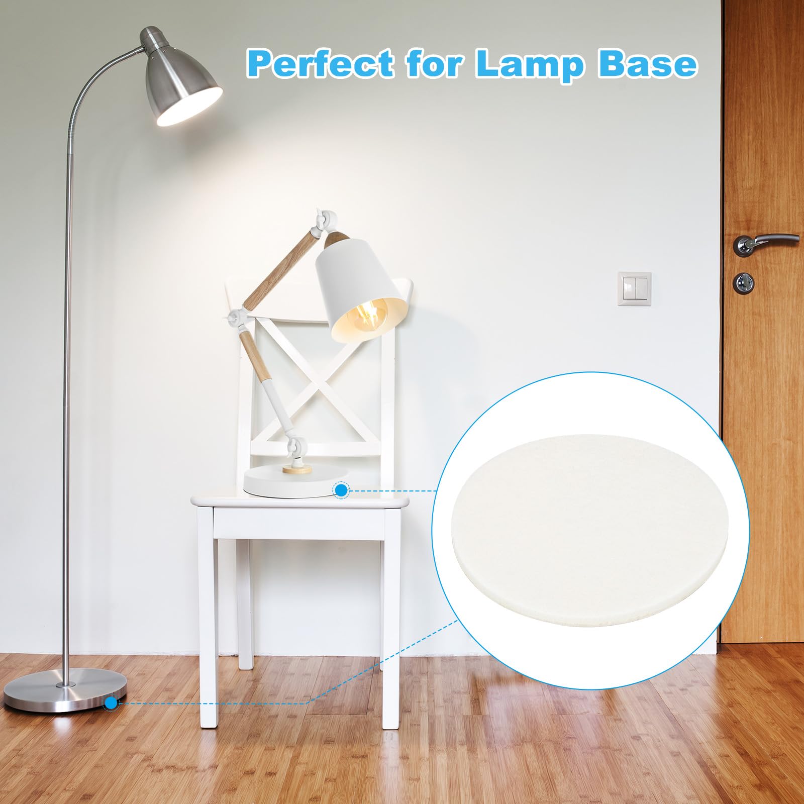 ajoutant stabilité et style à votre environnement, évitant les bruits forts lorsque les meubles sont déplacés. Spécification : Couleur : Blanc ; Matériau : Feutre ; Épaisseur : 5 mm / 1/5 pouce ; Diamètre du feutre : 127 mm / 5 pouces ; Liste de colisage : 8 pièces x Patins en feutre pour lampes SpécificationCouleur : BlancMatériau : FeutreÉpaisseur : 5 mm / 1/5 pouceDiamètre du feutre : 127 mm / 5 poucesListe de colisage : 8 pièces x Patins en feutre pour lampesAvantage :Il est fabriqué en feutre doux hautement résistant à l'usure et durable, offrant une base solide pour votre lampe tout en protégeant les surfaces délicates des rayures. Patins pour meubles et sols délicats : feutre, plastique, acier. Protection optimale contre les rayures, idéale pour bureaux et espaces professionnels Coussin En Feutre 20X Patins En Feutre Pour Pieds De Table Et De Chaise Diy Nail Quincaillerie... Patin Pour Meuble Intérieur PATIKIL 203 Mm Diamètre Patins En Feutre Pour Meuble, 4 Pcs 5 Patins Pour Meubles En même temps, il peut également être utilisé comme matériau pour la broderie, les chaussures et les chapeaux, l'artisanat, le bricolage fait main, etc. Pied De Canapé Lot De 30 Pieds Ronds En Caoutchouc Avec Vis, Patins Antidérapants En Caoutchouc Pour Pieds De Meubles Tampon De Chaise Application : Ce feutre a une large gamme d'utilisations et peut être utilisé non seulement sur les lampes et sous les meubles tels que chaises, bureaux, tables, tabourets, canapés, poufs, tables basses, commodes, armoires, etc. Conception adhésive : Ce feutre est muni d'un ruban adhésif, vous pouvez donc l'utiliser facilement à tout moment et n'importe où sans avoir besoin d'autres outils, ce qui est pratique pour réaliser divers travaux manuels ; vous pouvez également le découper dans les formes et tailles que vous souhaitez, vous permettant de créer librement., InstructionsÉtape 1., Nettoyez la surface de l'objet pour la rendre lisseÉtape 2., Déchirez l'étiquette adhésive à l'arrière et étalez lentement le couvercle pour le faire correspondre avec les objetsREMARQUEVeuillez confirmer la taille du feutre selon vos besoins avant de passer votre commande. En même temps, il peut également être utilisé comme matériau pour la broderie, les chaussures et les chapeaux, l'artisanat, le bricolage fait main, etc., Instructions : Étape 1., Nettoyez la surface de l'objet pour la rendre lisse ; Étape 2., Déchirez l'étiquette adhésive à l'arrière et étalez lentement le couvercle pour le faire correspondre avec les objets