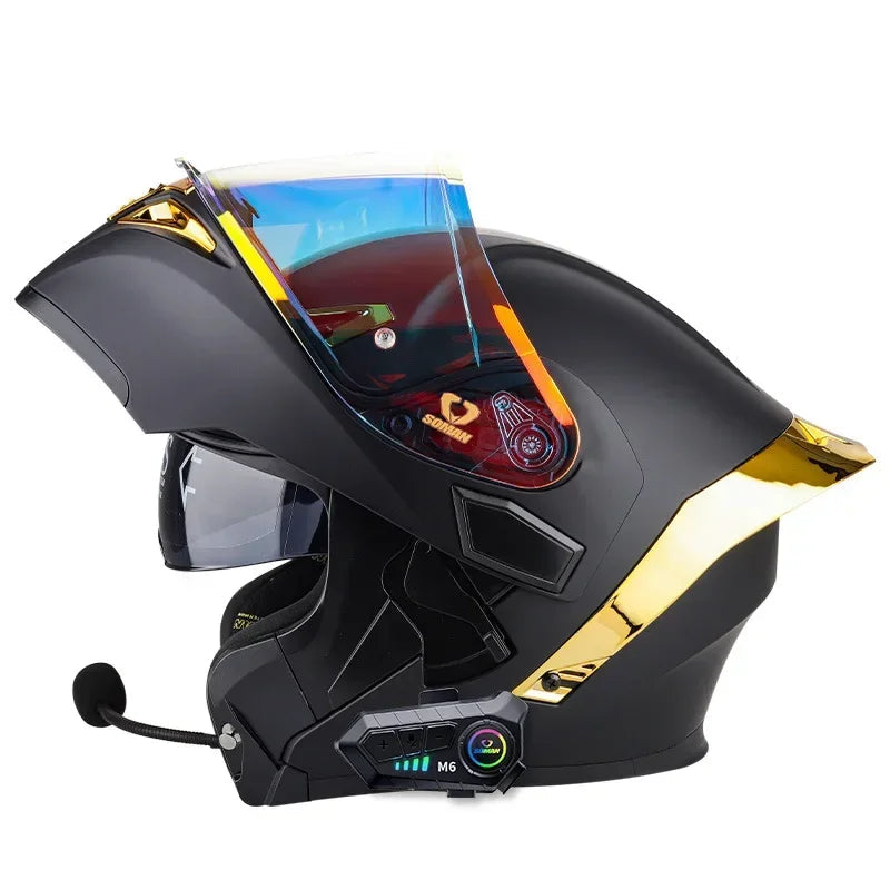 Casque Bluetooth Sena Casque Moto Bluetooth Intégré Casque Moto Bluetooth Intégral Meilleur Casque Bluetooth Pour Moto Il a été conçu pour répondre à vos besoins, que vous soyez un motard du week-end ou un passionné de la route. Doublure en EPS multidensité, anti-collision et résistance aux chocs, forte capacité d'amortissement. 1., Doublure intérieure de haute qualité, absorbant la transpiration, détachable, pour un port à long terme sans obstruction., 2., Matériau ABS macromoléculaire, anti-collision et anti-choc., 3., Protection solaire, antibuée, imperméable, lentille haute résolution, anti-ultraviolets et résistance à l'abrasion., 4., Selon le principe de l'aérodynamisme, la perméabilité à l'air est bonne., 5., Certification : Certification DOT/ECE 22., 05 Détails du produit : Type : Casque de moto flip bluetooth Matériau : ABS+EPS Poids : environ 1200 grammes Sexe : homme et femme Âge : adulte Doublure : doublure intérieure confortable et douce Taille : 55-62cm Taille : S (55 approx., 56CM) M (57 approx., 58CM) L (59 approx., 60CM) XL (61 approx. Pourquoi se contenter d'un casque standard lorsque vous pouvez profiter d'un confort optimal, d'une protection anti-rayures et d'un système de ventilation supérieur? Sans oublier l'incroyable fonctionnalité Bluetooth:📡 Intercom jusqu'à 300m de portée👍 Compatible avec intercom d'autres marques💧 Résistant à l'eau🎵 Son clair et limpide🔋 Autonomie 8h en communication💪 Avec ce casque, vous êtes protégé et jamais déconnecté ! Casque de moto modulaire Delta Origin avec Bluetooth intégré Motion... Non seulement vous pouvez profiter d'une musique merveilleuse et faire en sorte que la conduite ne soit plus ennuyeuse, mais vous pouvez également répondre aux appels via Bluetooth, ce qui peut améliorer efficacement la sécurité de la conduite. N'oubliez pas, les passionnés de moto comme vous sont notre priorité ! DOUBLE MIROIR : Le casque de moto est doté d'un double miroir, ce qui le rend plus pratique. Si, pour quelque raison que ce soit, vous n'êtes pas satisfait de nos produits, veuillez contacter notre équipe immédiatement. Casque Moto Modulable et son Bluetooth Intégré - : La Liberté et le confort de Conduire en Toute Sérénité ! MATÉRIAUX DE HAUTE QUALITÉ : coque en ABS robuste, résistant non seulement aux températures élevées, mais aussi aux basses températures. CONNEXION BLUETOOTH : Vous pouvez facilement coupler les casques de moto et les téléphones portables via Bluetooth. Le miroir intégré peut protéger efficacement les yeux, prévenir les rayons ultraviolets et éviter l'interférence d'une lumière forte sur la ligne de vision et les dommages à la vue pendant la conduite. Test du casque moto modulable ACLFFSHOP Bluetooth homologué ECE La norme ECE 22.06, qui remplace progressivement la norme ECE 22.05, introduit des tests plus rigoureux et plus complets, simulant des impacts à différentes vitesses et angles. Lors de votre choix, privilégiez les casques certifiés ECE 22.06, car ils offrent une protection accrue en cas d'accident. Conseils pour l'Entretien de Votre Casque