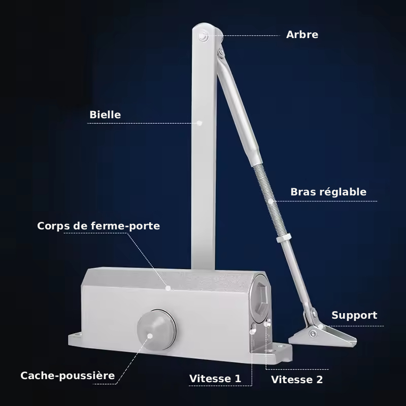Nos fermetures sont magnifiquement conçues et architecturalement agréables pour donner à votre entrée, vitrine ou ouvrir un dispositif de fermeture net. - Parcourez la boutique OWEL pour plus de variés. S'adapte là où vous en avez besoin Tornado Fans Paquet de 2 - Ventilateur mural industriel à grande... - Owel est synonyme de qualité et de design de ferme-portes commerciaux. Son motif de vis/boulon est de 12,7 cm de large et de 6,3 cm de haut. Le ferme-porte VEVOR offre un tampon hydraulique réglable, un corps en aluminium moulé résistant à l'usure et trois méthodes d'installation pour une fermeture de porte sûre, transparente et silencieuse. Les options de montage de notre ferme-porte monté en saillie sont un montage régulier sur bras (le plus économe en énergie), un montage sur montants supérieurs (assez économe en énergie) et un montage sur bras parallèle (avec 25 % d'efficacité énergétique en moins que les deux autres options). La projection de ce ferme-porte automatique est de 57 mm. Caractéristiques : ce ferme-porte pèse 5,7 kg. Fermoir de porte commercial extra robuste, fermoir Madagascar Fermeture Automatique Porte D'entrée Ferme-porte Automatique à Montage Commercial à Deux étages En Aluminium Intégré Hydraulique Pour Porte Coupe-feu Avec Bras Coulissant Fermeture Porte Intérieure Ferme-porte automatique hydraulique - 45-65 kg - Résistant au feu... Le ferme-porte robuste certifié UL est une solution parfaite pour les entrées et les portes à trafic moyen à élevé.
