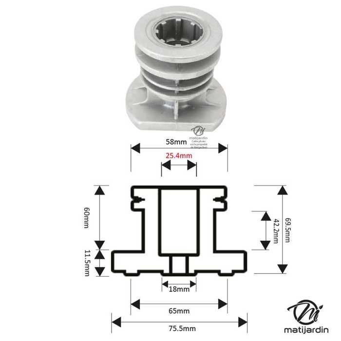 Support de lame, moyeu pour tondeuse compatible avec Castelgarden Poulie support de lame pour arbre de diamètre 22 mm Hauteur du support : 87 mm Changer une pièce coûte jusqu'à 70 % moins cher qu'un nouvel outil, tout en préservant la planète ! Lame Tondeuse Support Lame Matijardin - Compatible Castelgarden GGP, Moyeu 22.2mm - Pour Tondeuses Tractées Lame Tondeuse Alpina Lame Tondeuse Autoportée Support De Lame Castel Garden. 22465606/0 - Moyeux Lames Castelgarden Palier De Lame Tracteur Tondeuse Économisez Malin : Réparer plutôt que racheter ! Moyeu poulie pour tondeuse GGP / CASTELGARDEN Pour arbre moteur 22.2mm Réf. 22465605/0 PIECE D ORIGINE Hauteur : 88mm Profondeur : 48mm Diamètre : 22.2mm... Diamètre poulie : 58 mm, N° d'origine : 22465605/0, 224656050, 22465605 Livraison : 48 à 72 Heures - Commandé avant 13 heures, colis expédié le jour même : profitez de vos produits dès que possible Dans l'espoir de vous compter parmi nos futurs clients. Support lame tondeuse CASTELGARDEN 22465607/0, 224656070, 1111-9120-01, 1111912001, 222465607/0, 1111-9120-01, 122465607/3, 22465607/2, 1224656070, 122465607/0