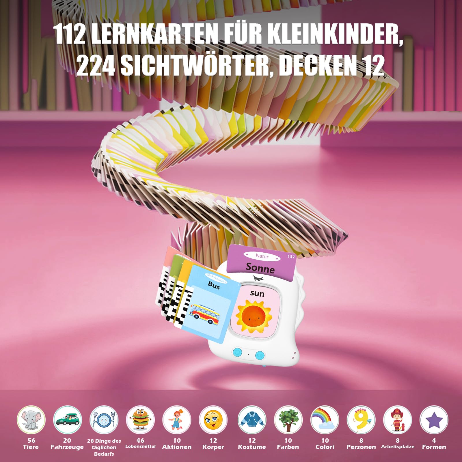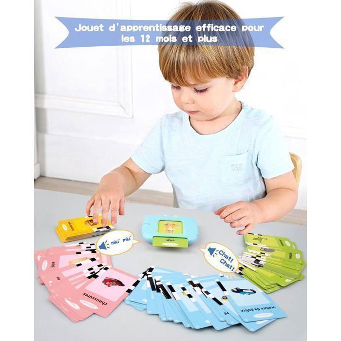 112 cartes, 224 mots utilisés ensemble : ces cartes d'apprentissage pour enfants avec chaque carte de mot sont accompagnées d'images de dessin animé vives et de descriptions vocales réalistes qui offrent aux enfants une expérience d'apprentissage intense. Après l'allumage, la carte d'apprentissage est insérée dans l'appareil et les images et les mots correspondants sont prononcés immédiatement. Cartes éducatives parlantes allemand anglais : découvrez 224 mots sur 12 thèmes ! Les enfants apprennent différents contenus en fonction de leur âge: 12-18 mois (couleurs, formes, animaux), 1-2 ans (fruits, nourriture, vêtements), à partir de 2 ans (objets du quotidien, métiers, nature Protection des yeux et confortable : les cartes flash parlantes allemandes n'ont pas d'écran électronique pour protéger les yeux de votre enfant. 4、PROTECTION DES YEUX ET CONFORTABLE: Ce produit n'a pas d'écran électronique pour protéger les yeux de votre enfant. Avec 14 thèmes, il répond aux besoins de vocabulaire des enfants de différents âges Il y a 14 thèmes, y compris les animaux, les nécessités quotidiennes, le transport, la nourriture, les fruits, etc. CADEAU POUR PROMOUVOIR LES COMPÉTENCES COGNITIVES PRÉCOMINCES: Apprendre à parler peut facilement aider les parents à améliorer les compétences cognitives précoces de leurs tout-petits, à entraîner l'audition et à encourager les enfants à parler. Cartes flash parlantes bidirectionnelles : ces cartes d'apprentissage parlantes sont un jouet éducatif amusant pour les enfants d'âge préscolaire et un jouet sensoriel pour les enfants autistes. Cartes Flash Parlantes - Éducatifs - 224 Mots - Pour Enfants de 2 à 6... C'est un excellent outil pour encourager le développement de la parole des enfants. Carte Parlante Jouet éducatif Pour Enfants De 1 à 6 Ans - 112 Feuilles Cartes Flash Parlantes Français L'apparence mignonne de licorne, les cartes colorées et les sons mélodiques attirent l'attention des enfants et favorisent leur développement de la parole. pour répondre aux besoins de vocabulaire des enfants d'âges différents (Remarque : les sons de certains objets silencieux ne peuvent pas être simulés) 3、FACILE À UTILISER ET PORTABLE: Après avoir allumé l'appareil, insérez une extrémité de la carte d'apprentissage dans l'appareil et les images et les mots correspondants seront prononcés immédiatement. FACILE À UTILISER ET À PORTER : l'apprentissage des mots est facile à utiliser et à transporter. Les parents n'ont pas à s'inquiéter que les yeux de leurs enfants soient endommagés par le jeu prolongé. Cartes Flash Parlantes - Éducatifs - 224 Mots - Pour Enfants de 2 à 6