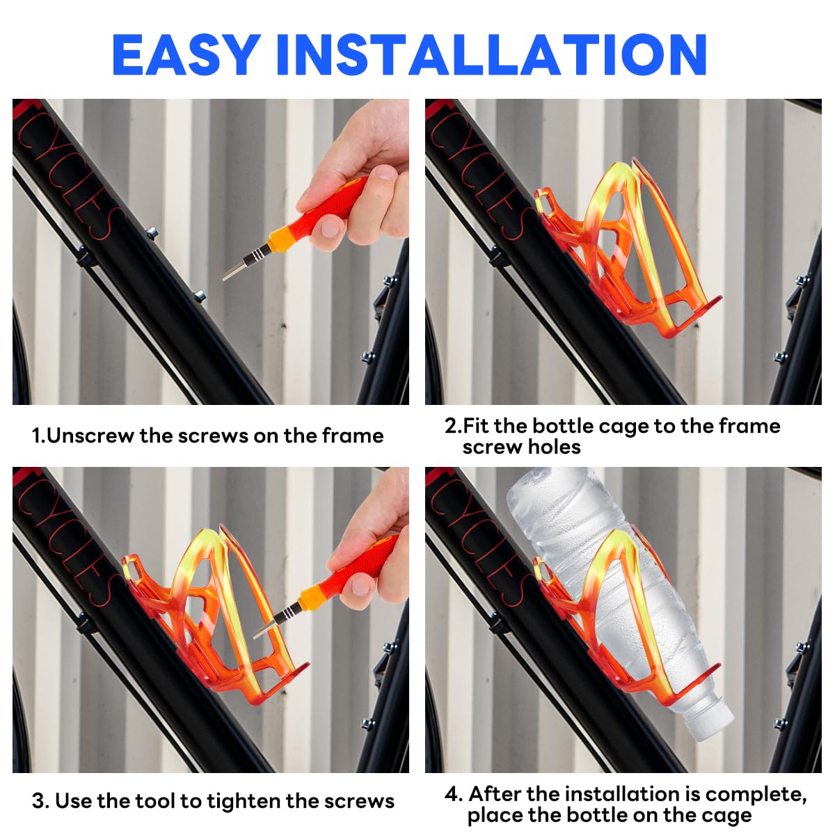 Binudum Porte-bouteille d'eau pour vélo avec vis - Léger - Pour vélo de route, VTT Le porte-bouteille d'eau de vélo est fabriqué en alliage, il est léger et très résistant, ce qui le rend parfait pour les applications routières ou sentiers... Porte Bouteille Velo Porte-bidon Vélo Ajustable Belle Vous - Rotation 360° - Compatible VTT Route Moto Poussette Diamètre 7.5cm Bouteille Porte Bidon Vtt Porte-bidon Vélo Bidon 600ml - Ensemble Route VTT Bidon Vélo Sans Bpa