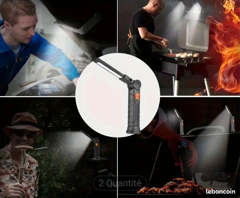 Coque en plastique enveloppée dans une couche de carbone noir, antidérapant, pliable, ce qui signifie que la lampe de travail sera une taille compacte pour le transport et le stockage. Rotation à 360 degrés, crochet et base magnétique pour une utilisation plus large. Idéal pour la réparation de voiture, l'éclairage de la maison, le camping, la randonnée, les pannes de courant, les urgences. Lampe de travail LED Rechargeable & Pliable Pourquoi choisir notre lampe de travail LED pliable rechargeable ? Batteries Li-ion rechargeables intégrées, 3 modes d'éclairage conçus pour répondre à vos différents besoins d'éclairage, la lumière COB a des modes haut et bas, un mode est LED sur le dessus. Mode d'éclairage : lumière blanche haute COB, lumière blanche basse COB, lumière rouge, lumière rouge clignotante, lumière LED. Baladeuses LED rechargeables - TOPCAR - lot de 2 - Noir - Crochet... 5 modes et rechargeables : batterie rechargeable intégrée, rechargeable par port USB (câble USB inclus), dispose de 5 modes d'éclairage : haute luminosité/luminosité moyenne/feu avant/avertissement rouge/stroboscopique, idéal pour l'extérieur, réparation de voiture ou lampe de sécurité. Matériau durable : cette lampe de travail LED est fabriquée en caoutchouc dur, anti-transpiration et antidérapante, la tête est en aluminium qui dissipe efficacement la chaleur, prolonge la durée de vie de la lampe. Caractéristiques : Matériau du corps : plastique ABS + métal. Nous le résoudrons dès que possible. Lot de 2 Veilleuse LED à détecteur de mouvement, Lampes de placard LED... Lampe Led Exterieur Rechargeable NileBoom Lot De 2 Lampes De Travail LED Pliables Rechargeables Avec Base Magnétique Et Crochet, Lampe De Poche Pivotante à 360°, Câble USB Pour Réparation De Voiture, Maison, Garage, Urgence Et Lampe Rechargeable Il sera votre premier choix pour travailler la nuit ou le camping en plein air.