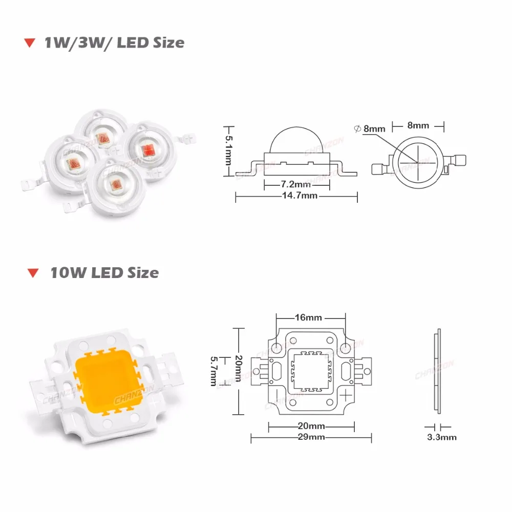 10Pcs Puce Led Haute Puissance 3W Rouge Profond Pour Plantes (650 Nm
