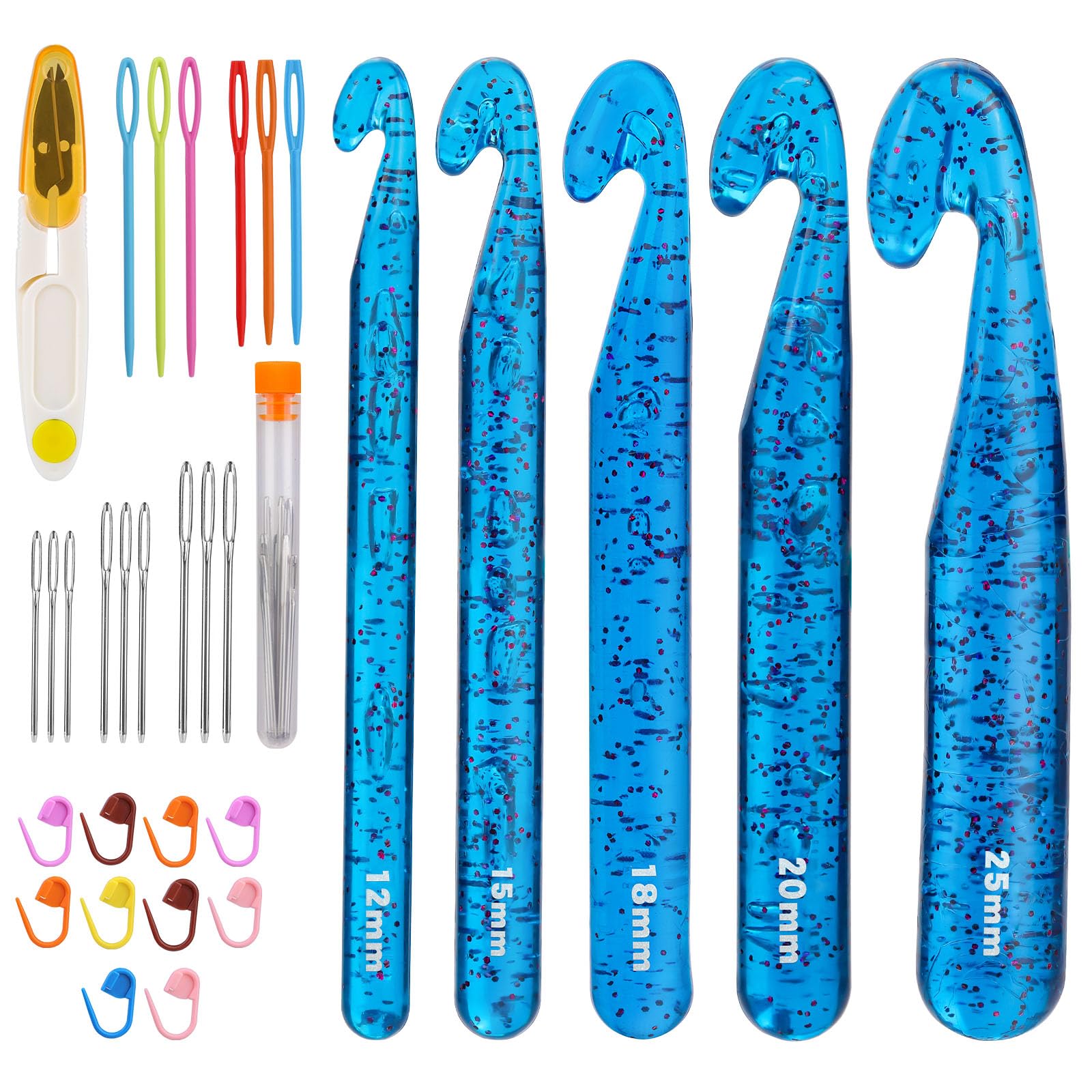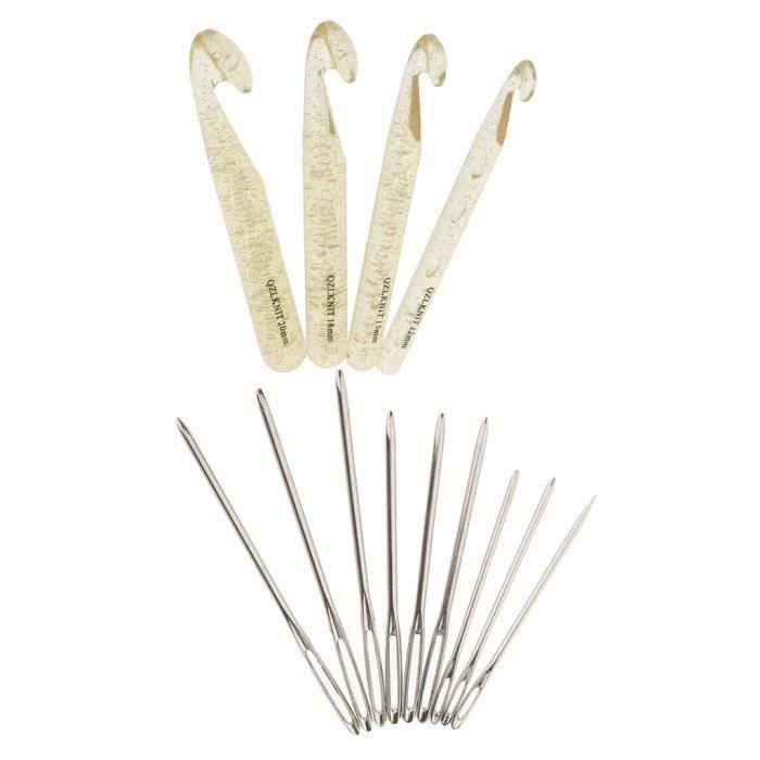 Le lot d'aiguilles à crochet comprend 5 grandes aiguilles à crochet (12 mm, 15 mm, 18 mm, 20 mm, 25 mm), 9 aiguilles émoussées à gros chas, 6 aiguilles en plastique (couleur aléatoire), 10 marqueurs de point et une paire de ciseaux. ENSEMBLE DE CROCHET portable avec poche de transport parfait pour les Multi-usage : ces énormes aiguilles à crochet sont idéales pour crocheter une couverture épaisse, un pull épais, un grand animal en peluche au crochet, un fil jumbo, de la laine épaisse, de la laine de roving, des articles de tapis, des fils à grosses boucles, des fils extra encombrants, des crochets de crochet larges ont de larges... Cela peut améliorer l'efficacité de la production, permet aux amateurs d'artisanat de profiter du processus de crochet Haute qualité : les aiguilles à crochet ont une surface lisse et un aspect transparent charmant. Le grand crochet est confortable au toucher et réduit le stress de la main, ce qui le rend adapté aux utilisateurs souffrant d'arthrite. Grand crochet : le lot comprend 5 grandes aiguilles à crochet (12 mm, 15 mm, 18 mm, 20 mm, 25 mm), 9 aiguilles émoussées à gros chas, 6 aiguilles en plastique (couleur aléatoire), 10 marqueurs de point et une paire de ciseaux. Utilisations multiples : le grand crochet peut être utilisé pour faire des animaux, des coussins, des couvertures chaudes, des coussins doux pour animaux de compagnie et d'autres décorations d'intérieur. Le grand crochet peut être utilisé pour faire des animaux au crochet, des coussins, des grandes couvertures chaudes, des coussinets doux pour animaux de compagnie et d'autres décorations d'intérieur. La forme et la taille de la poignée sont soigneusement conçues pour garantir une expérience de tricot efficace 4 TAILLES : Chaque tige de crochet est gravée avec la taille pour une identification facile, 4 tailles différentes pour répondre à vos différents besoins.POIGNÉE ERGONOMIQUE : La poignée est conçue de façon ergonomique pour être légère et ne pas fatiguer à utiliser pendant de longues périodes.RAINURES PROFONDES : Avec des rainures profondes sur les crochets, la mèche ne glissera... Aiguille Au Crochet Femme Grands Crochets De 12 Mm à 25 Mm, Aiguilles à Tricoter Catalogue Amigurumi Crochet Le lot d'aiguilles à crochet est adapté pour les débutants et les amateurs d'artisanat pour réaliser de grands projets de crochet