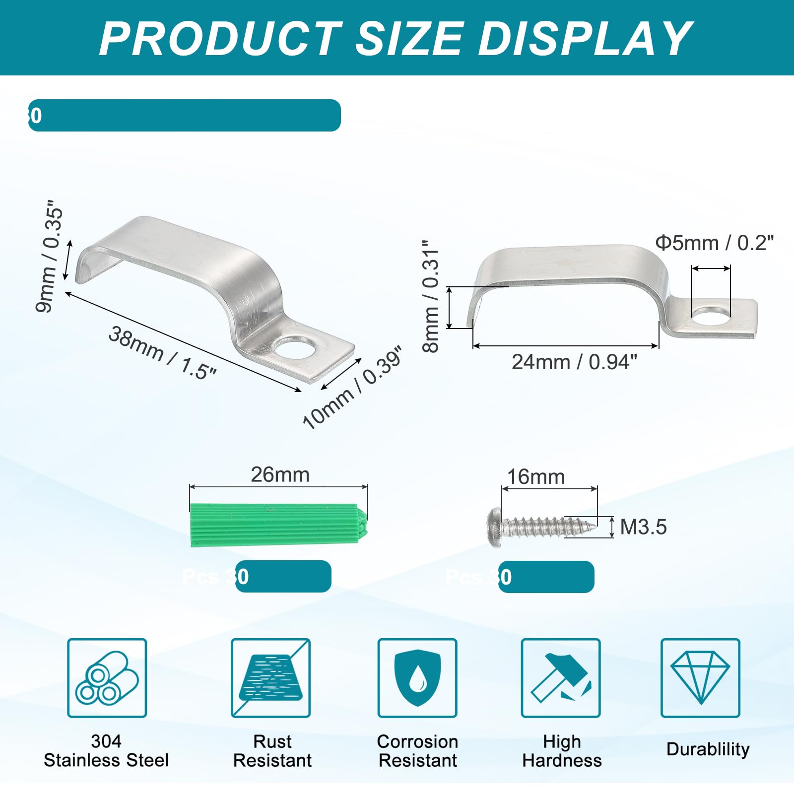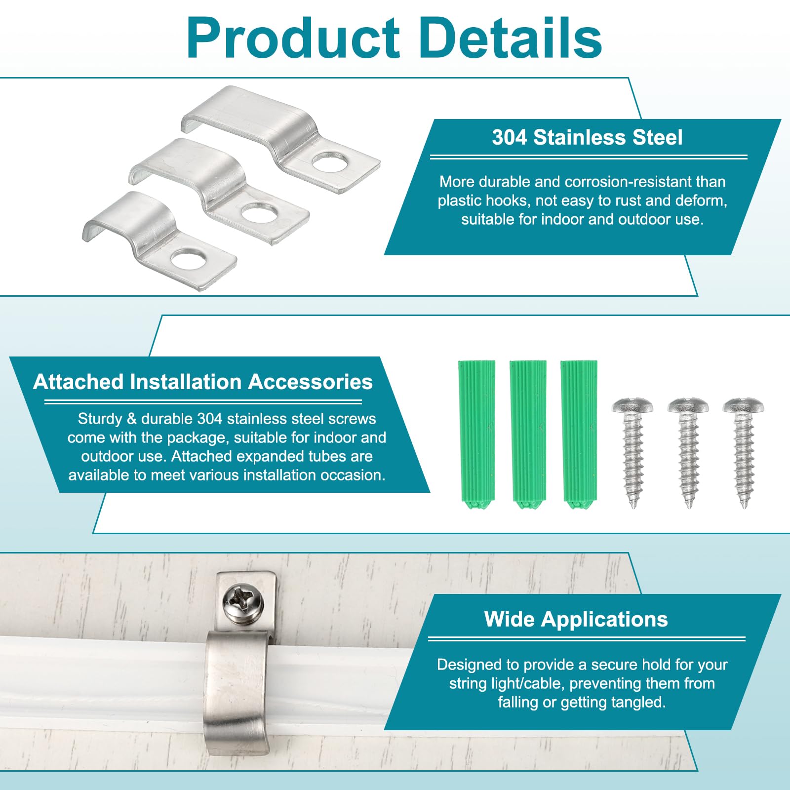 Il est recommandé de placer une couche de joint souple entre le collier de serrage et le raccord de tuyau, ce qui fournit non seulement un meilleur effet de serrage mais protège également le raccord de tuyau. Il est recommandé de placer une couche de joint souple entre le collier de serrage et le raccord de tuyau, ce qui fournit non seulement un meilleur effet de serrage, mais protège également le raccord de tuyau. Application : peut fixer des tuyaux, des tuyaux, des câbles, etc. 20MM U-Collier de Serrage 20 Pièces Tuyau Pour Fixation 20mm Soigneusement conçu : la conception de rainure en forme de U peut fixer fermement les tuyaux et les câbles au sol ou au mur, assurant la stabilité de la connexion, et les nervures de renfort offrent une résistance supplémentaire, ce qui le rend moins susceptible de se déformer après une utilisation à long terme. Clips Pour Tuyauterie Sourcing Map 50Pcs Attache Fixer Grillage Rigide Traille Trou Tube Côte Renforcée Collier Serrage Pour Tuyau En Acier Au Carbone Zingué 22,5x10x9,5 Mm Diamètre Int. 8mm Clips Pour Tuyaux de divers matériaux sur différentes surfaces et structures de support. La surface est galvanisée, anti-corrosion et antirouille, et la surface est lisse et brillante. Matériau : fabriqué en acier au carbone, durable, haute résistance, et ne se déforme pas facilement après une utilisation à long terme. Collier De Serrage Réglable Pour Tube Od 8~38 Mm Poignée En Plastique...
