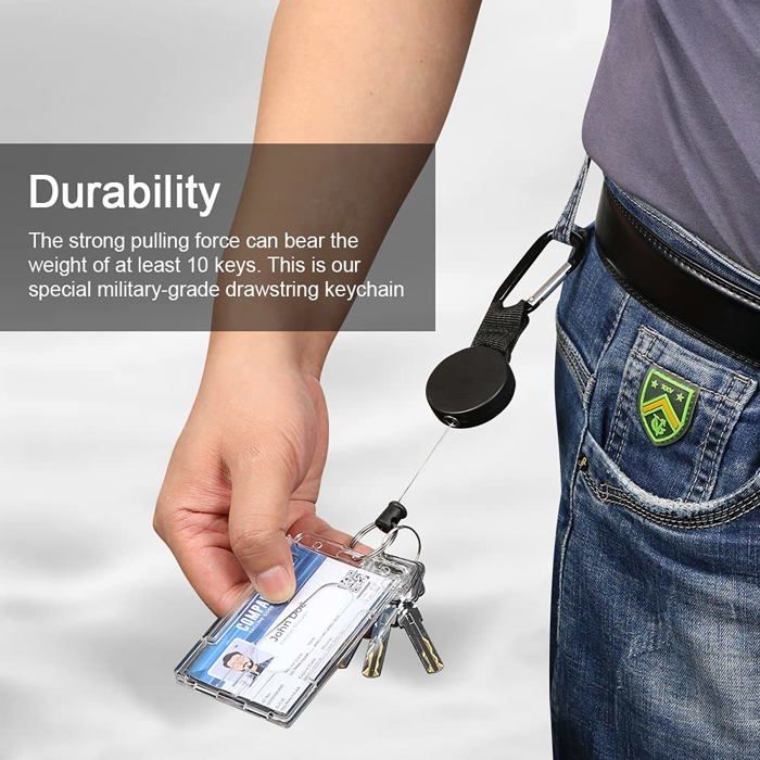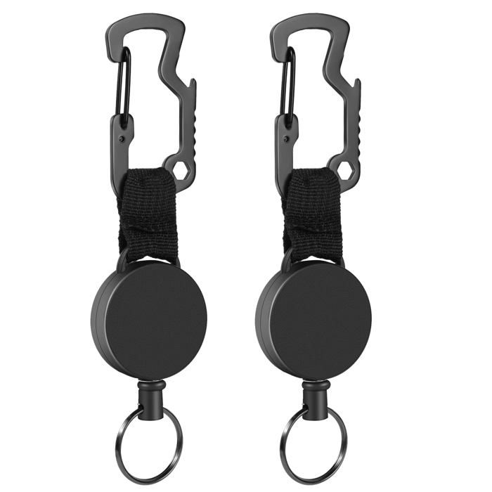 Super résistant et fiable pour une utilisation constante. Même si vous utilisez souvent ce porte badge enrouleur, ne vous inquiétez pas qu'il s'use rapidement. 【🔗Largement Utilisé】 livré avec un porte-clés en métal poli et une sangle en plastique robuste. Teskyer Lot de 2 porte-badges rétractables avec mousqueton, clip de 💎Spécifications : Couleur : Noir Matériau : Nylon, Métal, Acrylonitrile butadiène styrène (ABS) Dimensions : 82,5 x 32,5 mm Contenu : 3 porte-clés robustes - Chaque cordon de porte-clés s'étend jusqu'à 65 cm pour vous permettre de glisser rapidement votre badge ou votre carte d'identité et d'ouvrir facilement votre porte sans vous pencher. 【🔗Conception de Clip en Métal 】Doté d'un clip ceinture en métal à l'arrière, il peut être fixé en toute sécurité sur votre poche, votre ceinture, votre sac à dos, etc. Parfait pour suspendre des clés, des porte-badges, des lampes de poche, des clés USB ou d'autres objets dotés de trous. Facile à Transporter : Doté d'un... Facile à transporter sans charge supplémentaire ni encombrement. Parfait pour suspendre des clés, des porte-badges, des lampes de poche, des clés USB ou d'autres objets dotés de trous. la corde en nylon bien tressée peut s'étirer jusqu'à 65 cm, vous permettant de glisser des cartes et d'ouvrir facilement les portes sans enlever le badge ou la clé. Et ils sont largement utilisés dans les écoles, les hôpitaux, les bureaux, les voyages de golf, les voyages de pêche, le ski, etc. Chaque cordon de porte-clés s'étend jusqu'à 65 cm pour vous permettre de glisser rapidement votre badge ou votre carte d'identité et d'ouvrir facilement votre porte sans vous pencher. Corde prolongée et robuste Porte Badge Retractable PAQUET DE 2 Porte-Badges RéTractables Robustes, Porte-Badge En MéTal Porte Badge Retractable Cdiscount 【🔗Enrouleur de Badge Rétractable】La bobine à ressort en acier inoxydable intégrée fiable offre une force de rétraction puissante.