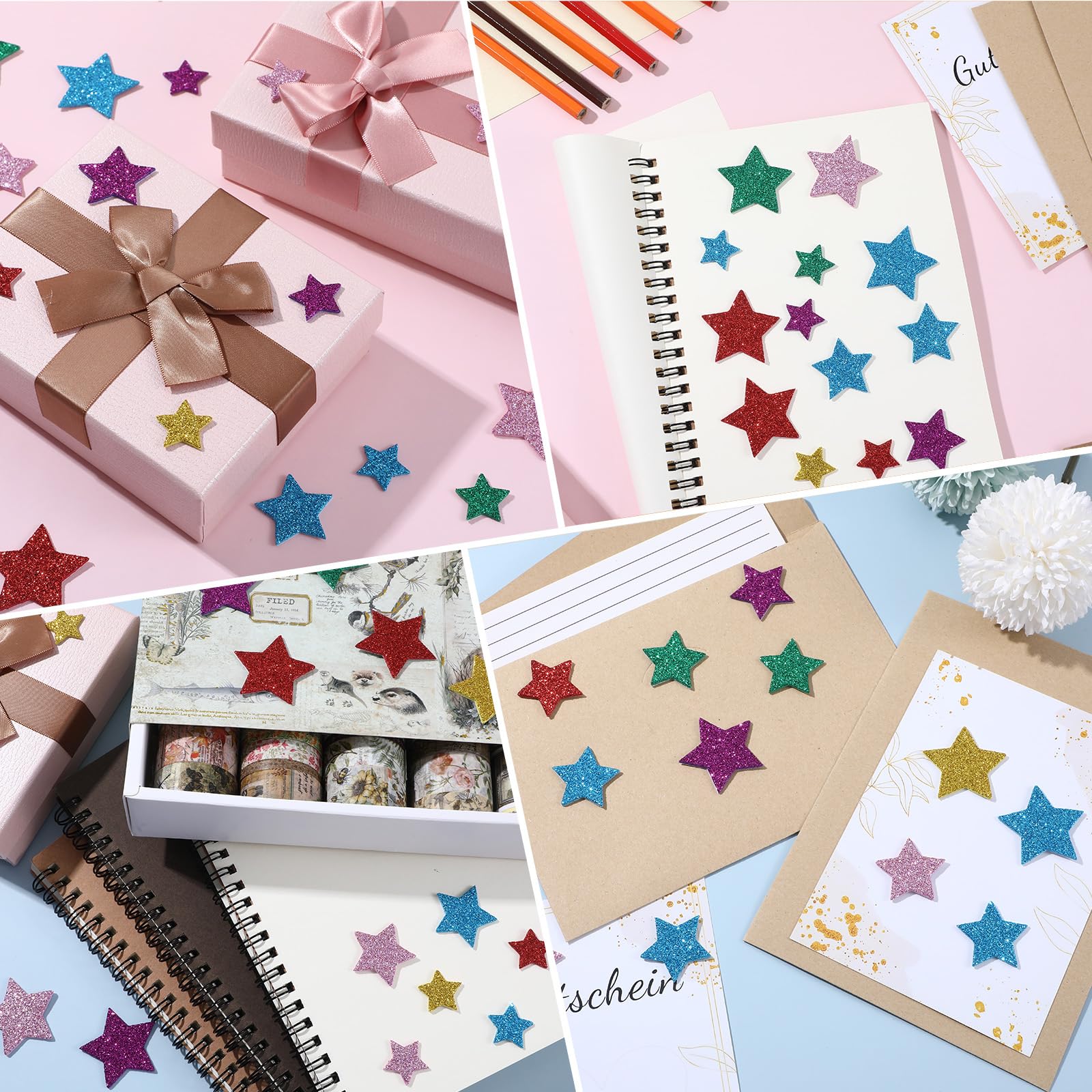 Liste de colisage : 3 paquets, un total de 270 autocollants étoiles Matériau : EVA Couleur : jaune, rose, violet, rouge, bleu, vert Taille du produit (cm) : longueur 2 cm/0,79 pouces, largeur 2 cm/0,79 pouces, longueur 2,8 cm/1,1 pouces, largeur 2,8 cm/1,1 pouces, longueur 3,6 cm/1,4 pouces, largeur 3,6 cm/1,4 pouces, Taille de l'emballage de livraison (cm) : longueur 26 cm x largeur 18 cm x hauteur 1,7 cm Fournitures créatives : nos autocollants de scrapbooking sont une décoration pratique et belle comme fournitures de bricolage qui vous permettent de laisser libre cours à votre imagination et à votre créativité et d'ajouter une touche de design à n'importe quel projet de bricolage ou de bricolage. Peut être facilement retiré lorsqu'il n'est pas nécessaire sans laisser de traces Giantree Lot De 270 Autocollants En Caoutchouc Mousse - Étoiles - Paillettes - Pour Artisanat. 4.6 104 avis. Giantree Lot De 270 Autocollants En Caoutchouc... Les diamètres des étoiles sont de 1,7 cm, 2,5 cm, 3 cm, 4,7 cm, 6 cm, 6,5 cm et 7 cm. Nous vous recommandons de les coller sur une surface sèche, lisse et solide. 【Plusieurs tailles et couleurs】Vous recevrez 270 autocollants étoiles en mousse en 6 couleurs différentes : jaune, rose, violet, rouge, bleu, vert, diamètre : 3,6 cm, 2,8 cm, 2 cm Stickers Noel Autocollants En Mousse - 70x - Lettres - Autocollants Enfants - Artisanat - Matériel Autocollant Noel 200 pièces d'autocollants étoiles, autocollants mousse pailletée Large application : les autocollants étoiles sont adaptés pour les fêtes de Noël, les fêtes d'anniversaire, la décoration de la maison et les outils pédagogiques des enseignants. Gicare 2100 Pièces 10 Couleurs Goettes Étoiles Autocollants...