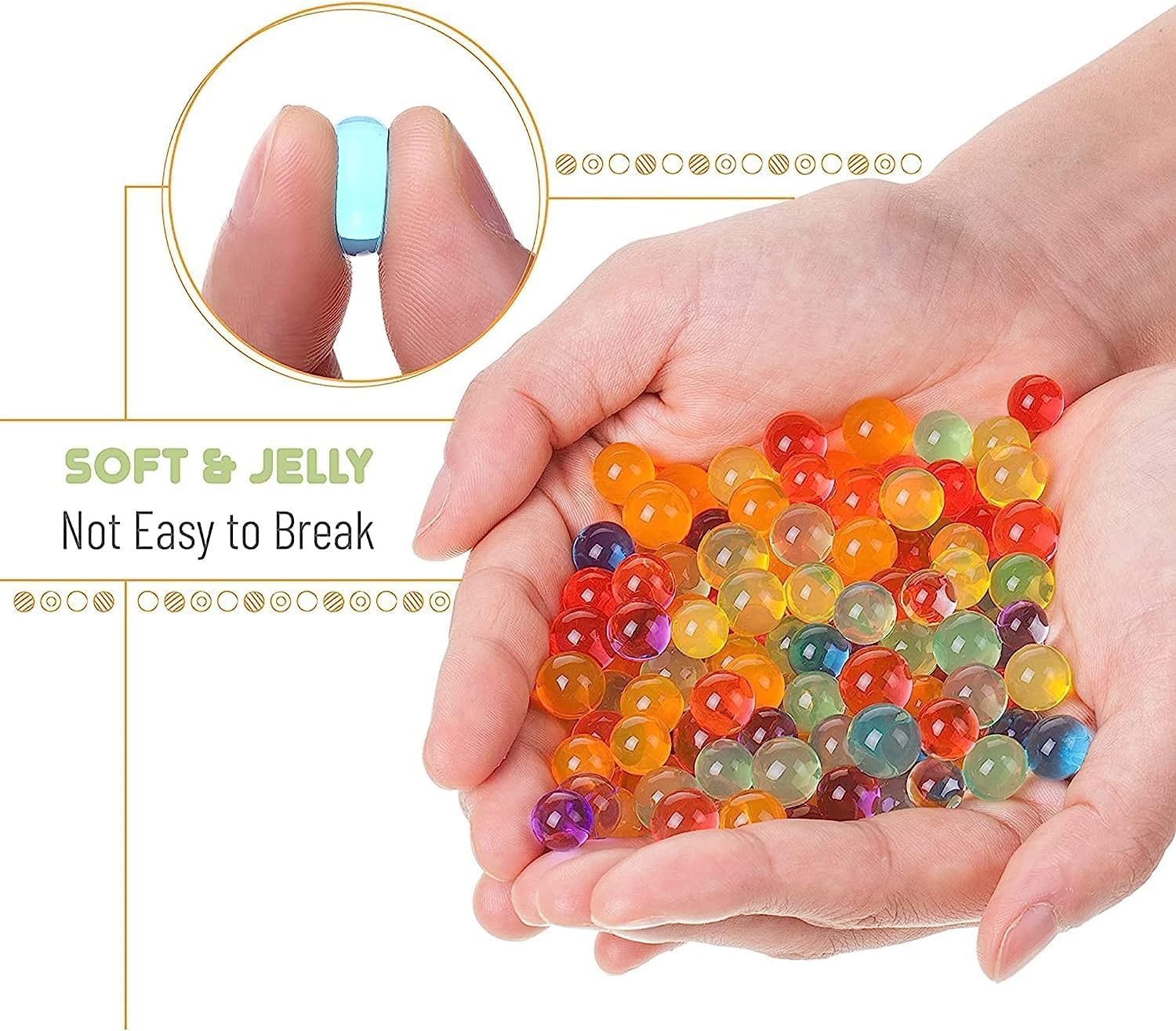 Nos tests montrent que cette taille accrue permet d'afficher des couleurs plus riches tout en offrant une durabilité supérieure, rendant les perles moins susceptibles de se briser sous pression. Fabriquées à partir de polyacrylate de sodium, nos perles en gel peuvent être réutilisées après séchage au soleil, offrant ainsi une solution décorative durable. En achetant et en utilisant les produits Anzon Mories, vous reconnaissez l'importance de suivre toutes les instructions de sécurité fournies pour une utilisation correcte. Cela garantit un rangement facile entre les utilisations. 3000 pcs de Perles d’Eau Multicolores Billes d'eau hydrogel pour Vase En utilisant ce produit, vous acceptez les termes et conditions suivants : Pas un Jouet : Ce produit n'est pas conçu ou destiné aux enfants. Les produits Anzon Mories sont destinés uniquement à des fins décoratives et pratiques. Sachet refermable : Nos perles d'eau sont conditionnées dans un sachet refermable et résistant à l'humidité, préservant leur fraîcheur et protégeant les perles sèches de l'humidité. Guide d'Hydratation : 1., Placez les perles d'eau (taille 2 - 3 mm) dans un récipient., 2., Les perles d'eau se dilatent complètement dans l'eau en 4 - 6 heures. Chaque perle mesure entre 2 et 3 mm et pèse environ 0,0016 g, ce qui correspond à environ 63 perles par gramme. Pour éliminer les perles d'eau de manière responsable, vous pouvez les enterrer dans votre jardin (elles sont non biodégradables mais peuvent aider à la compostage lorsqu'elles sont mélangées avec de la sciure de bois), les congeler et les réutiliser, les rétrécir et les stocker, ou les jeter à la poubelle. APTIDY - Perle d'eau Transparente | Env. 50.000 pcs perles d'eau - Bille d'eau hydrogel pour Vase, terreau des Plantes | Pour Décoration, Mariage, Anniversaire, Fêtes, Jardinerie, Fleurs, Noël Faits saillants principaux [Sûres et fiables] : Découvrez les merveilles de la nature avec nos perles d'eau multicolores Évitez tout contact avec les yeux et utilisez avec précaution. Perles D'eau Grossiste Anzon Mories Perles D'eau Claire 328g Billes Et Plates Pour Perle A Eau KONFEN Perles d'eau, env. 5000 Perle d'eau Bille d'eau, 7-8 Perle Eau... Veuillez suivre les directives locales de gestion des déchets pour un traitement responsable. Conseils pour les Vases : Une immersion prolongée des perles d'eau peut entraîner leur effondrement ou leur dissolution en raison de substances provenant des plantes, de micro-organismes, de la lumière directe du soleil ou de fluctuations de température. En cas d'irritation, cessez immédiatement l'utilisation, lavez la zone affectée et consultez un médecin si nécessaire. Risque d'irritation : Le contact avec les perles d'eau peut provoquer des irritations cutanées et oculaires, en particulier chez les enfants et les personnes sensibles aux allergies. Un sachet contient environ 20 500 perles.