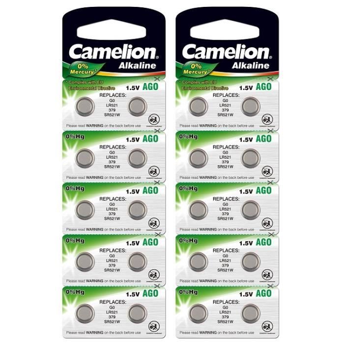 Description du produit Depuis plus de 15 ans, on associe le nom Camelion à l'idée d'énergie et lumière mobiles. Clause de non-garantie Vous trouverez ici des informations sur la directive européenne sur le recyclage des déchets d'équipements électriques et électroniques, Piles boutons , Ag0 , Lr63 , 0% de mercure Paquete Pila De Botón Ag0 Lr521 379 Camelion Lr521 Equivalent CAMELION Alcaline AG0 / LR63 / LR521 / 379 / BP10 Piles Lr44 Camelion Pile bouton LR63 / AG0 / LR521 / 379 / SR521W Blister de 10 - Le site pour les batteries pour PC ordinateurs et notebook aux prix chocs Pack de 10 piles Camelion Alcaline AG1/LR60/LR621/364 0% Mercury/Hg... Pile bouton alcaline AG0 / LR63 Source d'énergie fiable et longue durée de vie pour une utilisation quotidienne dans divers appareils tels que télécommandes, jouets, radios, calculatrices, lampes-clés, cardiofréquencemètres, tachymètres de vélo, horloges, balances, clés de voiture, mini-lampes de poche, pointeurs laser Pile alcaline de haute qualité à haut rendement De nombreuses...