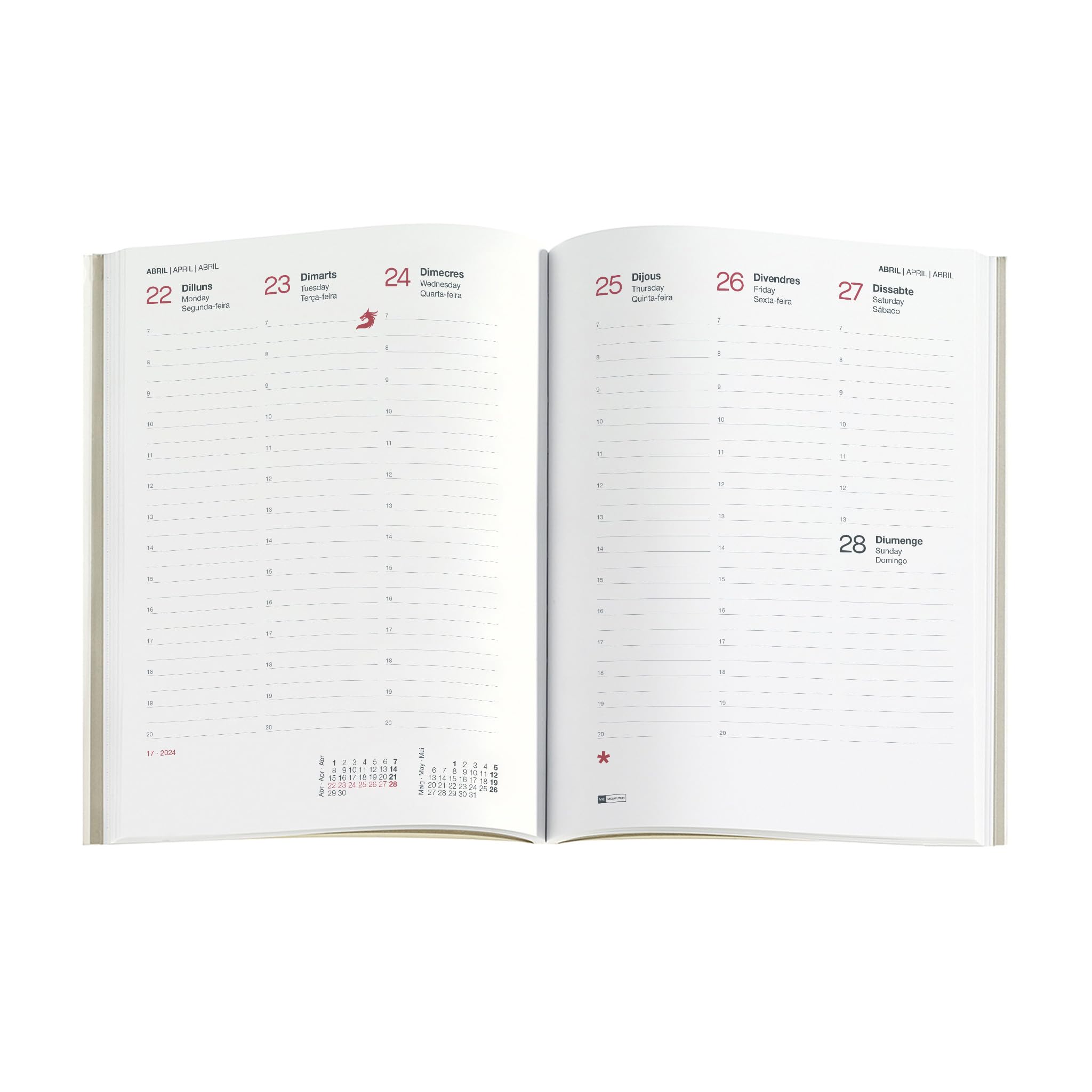 Agenda spirale Plus semainier Minidots 24., Couverture spiralée en carton doublé et plastifié mat., Fermeture élastique., Détails dorés. Agenda 2026 miquelrius plus wire o semana vista gris basics - Material Couverture en carton 100 % recyclé avec élastique de fermeture et année sérigraphiée. Reliure à spirale qui permet d'ouvrir à plat l'agenda et de faire le tour... Papier ivoire extra opaque 70 g/m² FSC Mix Credit garantissant que le papier provient de forêts écologiquement durables. Dimensions de la table : plus 155 x 213 mm (A5). Papier ivoire 70 g, FSC Mix Credit. Langues : espagnol – anglais – portugais Contenu : annualité semaine à vue horizontale ; de janvier à décembre 2024., Fiche d'informations personnelles, calendrier 3 ans, calendrier bimensuel sur chaque double page, dates à retenir, recommandations, planning mensuel, feuilles de notes et feuilles d'adresses. Couverture rigide en carton doublé et plastifié mat avec détails dorés., Élastique de fermeture. Reliure à spirale avec feuilles micro-perforées dans le coin pour indiquer la date actuelle., Dimensions : 155 x 213 mm. Comprend : jours fériés espagnols et portugais. Dimensions : 155 x 213 mm. Feuilles avec coins micro-perforés pour indiquer la date actuelle. Icônes indiquant: changement d'heure, début saisons, nouvel an chinois, carnaval et pluie d'étoiles (entre autres Miquelrius Agenda Annuel 2024 Semainier Format Plus 155 X 213 Mm Reliure à spirale qui permet d'ouvrir à plat l'agenda et de le retourner complètement.