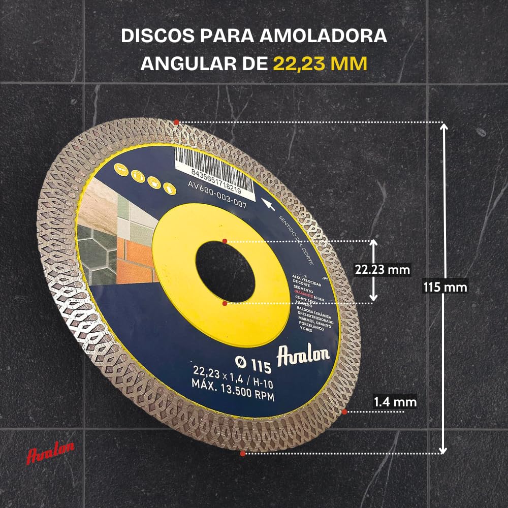 Disque Carrelage Acheter Avalon Série PRO Disque Diamant Porcelaine 115 Mm Pour Meuleuse, Couper La Porcelaine, Céramique, Le Granit Et Marbre à Sec Humide. ? Comparer Chez Disque Diamant Carrelage Convient à toutes les meuleuses Convient à toutes les meuleuses d'angle avec axe de 22,23 mm des principales marques Bosch, Makita, Metabo, DeWalt, Parkside, Einhell, Black & Decker, Würth, etc. Avalon a conçu une gamme variée de disques de diamant avec des modèles destinés à la coupe principale du béton et d'autres pour le carrelage. Accessoires et consommables Découpe Disque pour meuleuse Disque diamant en porcelaine pour meuleuse, céramique dure, carreaux, marbre, granit, calcaire. Avalon Série PRO. ( 115 / 22,23 x 1,4 / H-10) Confirmation d’ajout au panier Diamètre (en mm) : 115 Matière principale sur la masse totale du produit : Autre Type de machine : Meuleuse... Avalon Série PRO. ( 115 / 22,23 x 1,4 / H-10) Vendu par Ferretería Online VTC Livraison à domicile 29 ,90€ Disque diamant Comet MAKITA B-12778 125 mm Vendu par European Tools 3 autres offres Livraison offerte - 29.34 % 77,24 € Au lieu de 77,24 € 54 ,58€ 200x 125 mm Meule à tronçonner Fer, Métal, Acier, Inox, Aluminium 125x1... Durabilité maximale pendant les travaux effectués. Lot2 De 6 Assiettes Porcelaine WINTERLING MARKTLEUTHEN BAVARIA D 22 Cm Disque à tronçonner en porcelaine ou disque diamanté en métal mixte d'acier à haute teneur en carbone et de diamant Efficacité de coupe maximale Polyvalence dans la découpe : Permet de travailler sur divers matériaux tels que la céramique, le marbre, le granit, le calcaire, la porcelaine et le grès extrudé Efficacité de coupe maximale Compatibilité meuleuse : disque de 115 mm pour meuleuse d'angle acceptant un arbre de 22,23 mm Durabilité maximale pendant les travaux effectués. Processus de fabrication de haute qualité Nos outils sont fabriqués selon les plus hauts standards de production et sont soumis à toutes les normes nécessaires pour assurer un travail sûr.
