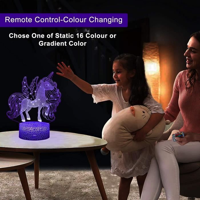 Taille de la base : environ 87 x 87 x 35 mm. La plaque acrylique optique est gravée avec différents graphismes 2D pour produire un impact visuel 3D. Dimensions du colis : environ 22 x 15 x 5,5 cm. Livré avec différents styles qui rendent plus amusant à jouer, en fonction de votre humeur ou de l'environnement. 16.95 pour licorne 3d veilleuse pour enfants illusion lampe enfants 16 couleurs lampe changeante smart touch télécommande fournitures de fête comme anniversaire idée cadeau de noël pour filles garçons de 2025. Vous cherchez des Veilleuses 3D ? petit prix en ligne ? Achetez-les en solde sur aujourd'hui Lampe Licorne AIRUEEK Veilleuse Licorne Pour Enfants, Télécommande 16 Couleurs Changeant Dimmable,Decoration Chambre Fille Licorne Jouet Fille 4 5 6 7 8 9 10 11 Ans Lampe Licorne Led Lumière LED 16 couleurs : vous pouvez toucher le bouton sur la base de la lampe licorne et utiliser la télécommande pour changer 7 ou 16 couleurs différentes comme vous le souhaitez. Caractéristiques : 1., Télécommande infrarouge contrôlée au sein de 24 touches, dont 16 couleurs pures en option, 4 modes de flash dynamiques (flash/stroboscope/fondu/lisse) et luminosité réglable., Effet visuel 3D. Contenu : 1 plat en acrylique. 【Sûr et fiable】 : basse tension, double résistance protection, télécommande, faible chaleur de travail. Lampe de Nuit à LED en Forme de Tête de Licorne Animal Éclairage... L'effet d'éclairage unique est une lampe de décoration d'intérieur avec une superbe illusion visuelle, elle rend votre pièce plus intéressante. 1 manuel d'utilisation (français non garanti). Conseils : 1 : Visuel 3D, l'écran de la lampe licorne lui-même est plat. Lampe de Nuit à LED en Forme de Tête de Licorne Animal Éclairage 1 base en plastique ABS., 1 câble USB., 1 télécommande. Cadeau parfait et excellente décoration : les lumières 3D sont un cadeau créatif. Sécurité et économie d'énergie avec une faible puissance de 0,5 W, sans danger pour le corps humain. La luminosité douce n'est pas nocive pour les yeux. Alimenté par USB ou 3 piles AA (non fournies)., 5., Durable avec une durée de vie de 10 000 heures pour les LED., 6., Meilleur choix de décoration pour chambre, chambre d'enfant, salon, bar, boutique, café, club, restaurant, etc. 7 lumières de couleur unique et 16 couleurs changeantes : rouge, vert, bleu, jaune, cyan, violet, blanc ; lorsque vous appuyez sur 8 fois, le changement progressif automatique de ces 7 couleurs. Comme lampe de chevet la nuit, afin que vous et vos enfants puissiez profiter d'une nuit douce et chaleureuse