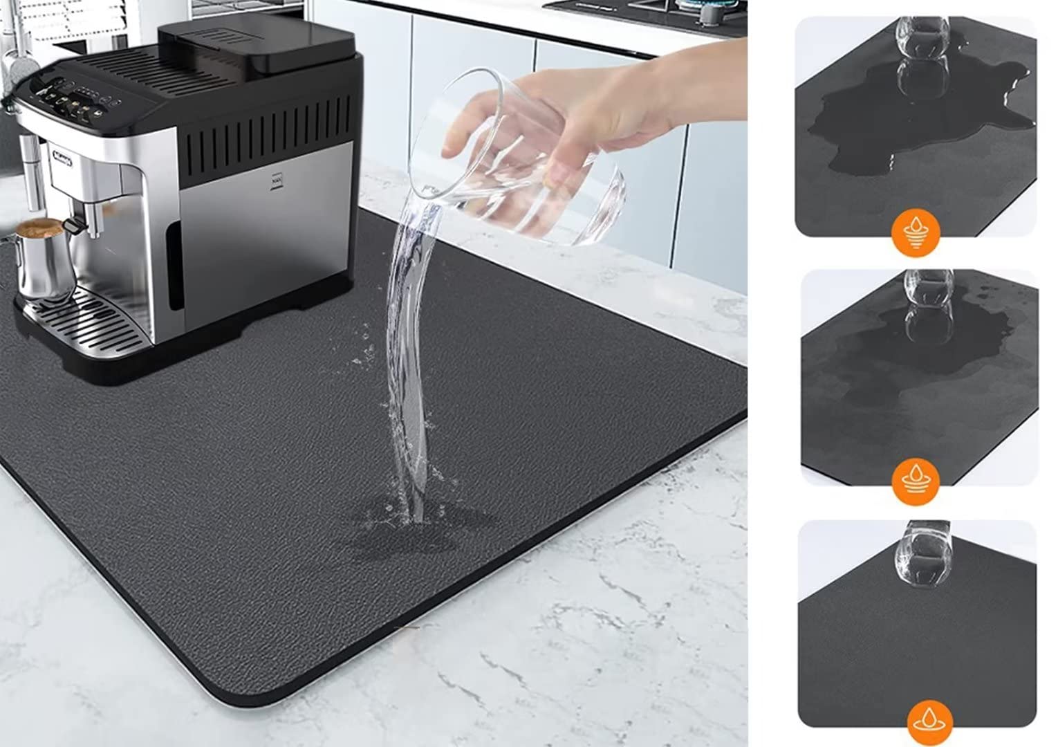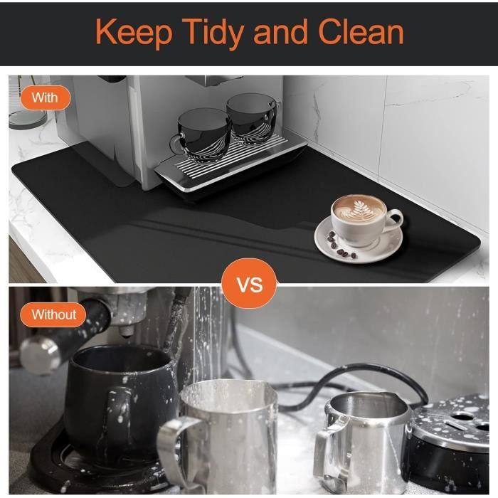 Le tapis de vaisselle égouttoir de cuisine peut être plié pour un rangement et une portabilité faciles. d'être rayée ou éraflée. Aidez votre vaisselle et vos couverts à sécher plus rapidement, de manière plus hygiénique et gardez le plan de travail propre et bien rangé à tout moment. Haute qualité tapis d'égouttement. Le tapis absorbant vaisselle est une bonne aide pour votre cuisine. Protégez la Vaisselle : le dos du tapis égouttoir à vaisselle est conçu avec un support en caoutchouc antidérapant pour empêcher le tapis de glisser. Séchage Rapide Et Absorbant : Avec Son Fond En Velours Synthétique Et Caoutchouc, Ce Tapis Est Super Absorbant Et Sèche Rapidement, L'accumulation D'eau Et... Ultra Absorbant : Tapis de séchage fabriqué en terre de diatomées naturelle sûre avec une super capacité d'absorption d'eau et une capacité de séchage rapide. La conception de rembourrage empêche la vaisselle comme les bols, la verrerie, etc. Le fond imperméable peut empêcher le liquide renversé d'endommager le dessus de table et de garder le dessus de table propre pendant longtemps. Lot de 2 tapis de séchage absorbants pour comptoir de Dimensions : le tapis d'évier mesure 40 x 60 cm, ce qui est assez grand pour accueillir la plupart des ustensiles de cuisine, et peut être coupé librement à une taille appropriée selon les besoins. Tapis De Séchage égouttoir Tapis De Machine à Café, Tapis D'égouttage, Tapis De Séchage Table De Bar Placez la cafetière sur le tapis de sechage et le fond antidérapant collera à la table et l'empêchera de bouger. Pour une tache plus profonde, rincez la tache pour rafraîchir sa fonctionnalité et son apparence. Parfait tapis vaisselle absorbant absorbant. Tapis Égouttoir Machine À Café, Café Impression Tapis De Séchage... Il peut absorber la majeure partie de l'eau en quelques secondes et évaporer rapidement l'eau de la surface.