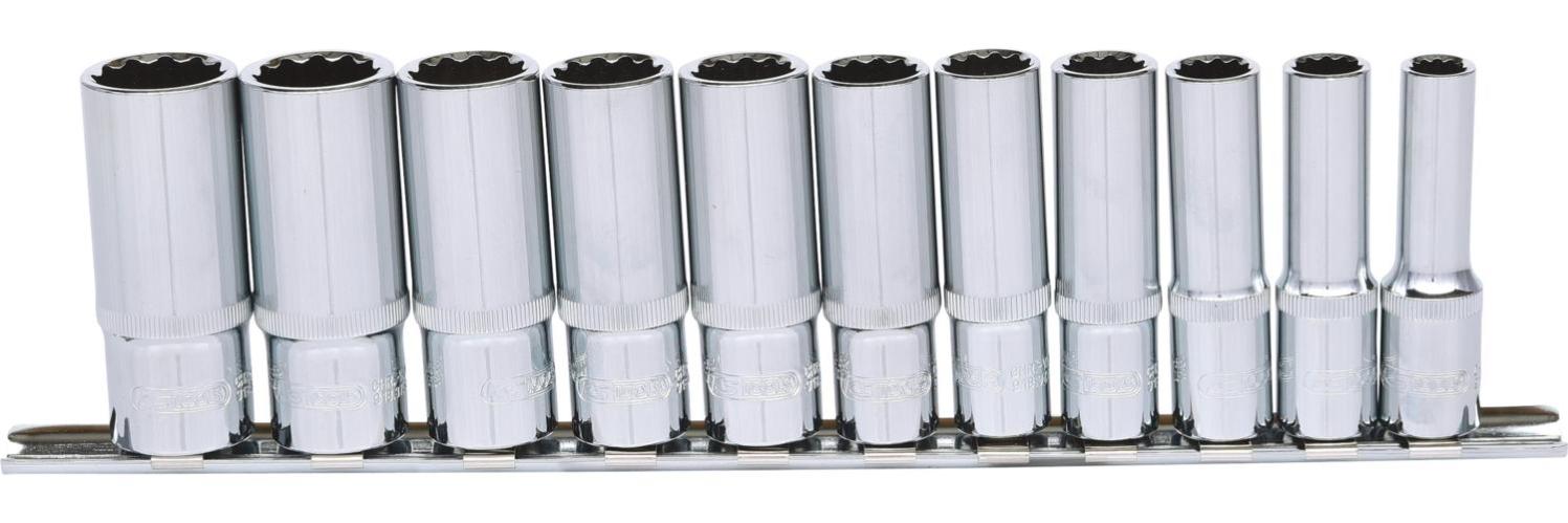 Douilles 12 pans CHROMEplus® | 3/8 | Douilles | Tournevis à Conforme aux normes DIN 3124/ISO 2725-1., Intérieur à 4 pans avec gorge à billes , Utilisation manuelle , Chromé brillant , Chrome vanadium , 12 pans , Profil Flank Traction Fabriquée en acier au chrome vanadium de premier choix, cette douille offre une grande résistance et durabilité. La surface chromée brillante non seulement... Douille 17 KS Tools 918.4813 Socket 3/8" CHROMEplus 12-Point 25/32 Douille 34 Conçue selon les normes DIN 3124 et ISO 2725-1, cette douille est idéale pour une utilisation manuelle grâce à son carré d'entraînement intérieur conforme aux normes DIN 3120 et ISO 1174, équipé d'une encoche pour verrouillage par bille Intérieur à 4 pans avec gorge à billes , Utilisation manuelle