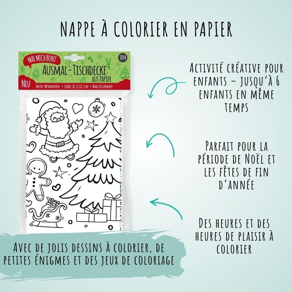 Napperons mandalas 18 x 12 po à colorier Spécification : Matériel : papier Couleur : vierge Taille : 118 * 84CM Le paquet comprend : 1pcs * Nappe de Noël Nativité à Colorier 12pcs * stylos de coloriage Dessins de la Nativité de Noël : Notre papier à colorier Jésus est conçu sur le thème de la nativité de Noël, montrant la scène de la nuit sainte dans l'étable, et conçu dans un style cartoon, également agrémenté de divers rois mages et d'angles d'animaux, mignons et attrayants. JEKA Nappe en Papier à colorier, Motif : Noël, Nappe à colorier Noël, Images à colorier Noël, Coloriage Noël, Décoration de Table de Noël, Cadeau de Noël, Activités pour Enfants Poster A Colorier HOWAF Nappe à Colorier Pour Enfants, Nappe De Noël En Papier à Colorier Avec Feutres De Coloriage, Poster Géant à Colorier Cadeau Noel Pour Enfant Filles Garçons Decoration Noel Petite Creche De Noel Vous pouvez colorier votre propre papier de coloriage de Noël et l'utiliser pour décorer votre maison, votre chambre, votre salle de classe, votre mur, votre porte où vous le souhaitez. Achetez en toute confiance : nous fournirons un service après-vente à 100 % sur ces affiches Nappe de Noël Nappe à Colorier pour Enfants, veuillez nous contacter si vous avez des doutes ou des questions, nous vous répondrons dès que nous verrons les nouvelles. Cadeaux de Noël parfaits pour les enfants : Nos jeux de Noël pour enfants font briller les yeux des enfants et font de la fête de Noël une expérience inoubliable pour les enfants, garçons et filles. Le poster est fabriqué en papier de haute qualité, léger et solide, qui ne se décolore pas et ne se déchire pas facilement. Haute qualité : L'ensemble de Nappe Table Noel Crèches de Noël comprend 12 stylos de couleurs différentes. Nappe À Colorier De Noël, Nappe En Papier De Noël, Nappe À Colorier... Poster à colorier de Nativité Noël : Vous recevrez 1 poster géant de Nappe de Noël Nativité à Colorier, 24 stylos de coloriage de différentes couleurs, la taille du poster géant de coloriage est de 118 * 84cm, le papier à dessin de Noël super géant offre de beaux motifs et des tâches passionnantes sur le thème de Noël pour les enfants, garçons et filles.