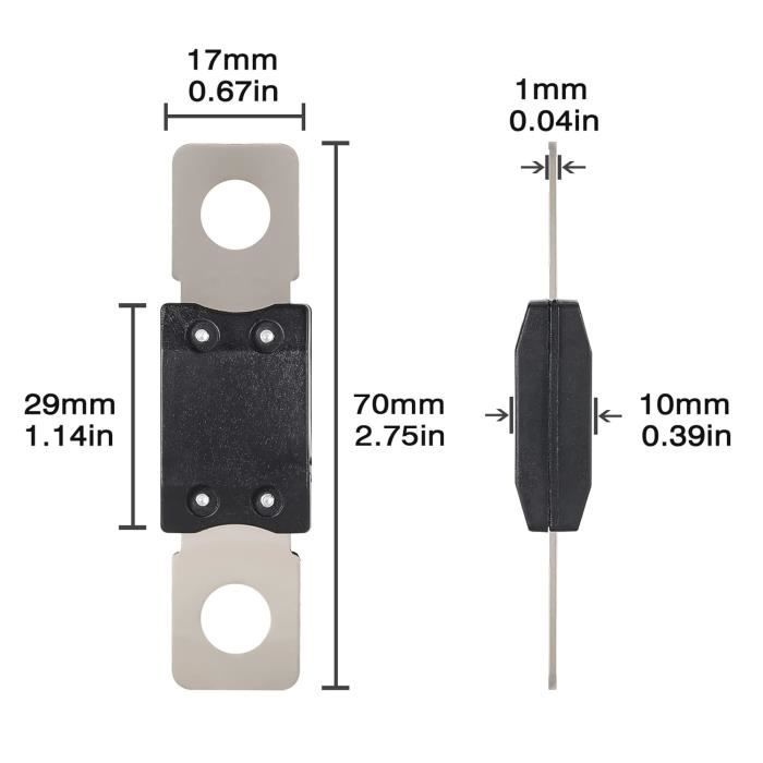 Le montage à lame, à action rapide, offre une bonne application pour les voitures, les motos, les bateaux, les applications générales de courant continu, etc. Contenu du paquet: 3 x Fusibles ANL Mini Fusible Voiture 12 Pièces 20A 25A 30A 40A 50A 60A Fusibles Application: pour véhicules, camions, suv, motos, bateaux, audio, stéréo, lecteurs CD. Matériau: Fabriqué à partir de plastique et d'alliage de cuivre. Il est durable, résistant à la chaleur, robuste pour éviter toute rupture ou distorsion, et possède une bonne conductivité. Type de fusible: Fusible DC ; Courant Type de fusible: Fusible DC ; Courant: 60A(amp); Tension: 12-125V Fusibles 60 Ampères Norauto A ABSOPRO 5Pcs Fusibles À Bande Haute Intensité De 120A 12V Fusibles Automobiles Pour Porte-Fusibles Audio Pour Voiture Fusibles Pour Voiture Bonne protection pour votre voiture ou votre appareil électrique contre les courts-circuits, les surcharges, etc. Application: pour véhicules, camions, suv, motos, bateaux, audio, stéréo, lecteurs CD. Spécifications:Matériau: Plastique, métalCouleur: Noir, argentéCourant: 60A(amp)Taille totale: 6., 9x1., 9x1cm / 2., 72x0., 75x0., 39(L*W*H)Taille de la broche(Trou d'un centre à l'autre): 5cm / 1., 97Tension: 12-125V Le paquet comprend:3 x Fusibles ANL SAL Fusible de lame de voiture Mini Fusible à Lame, Fusibles...
